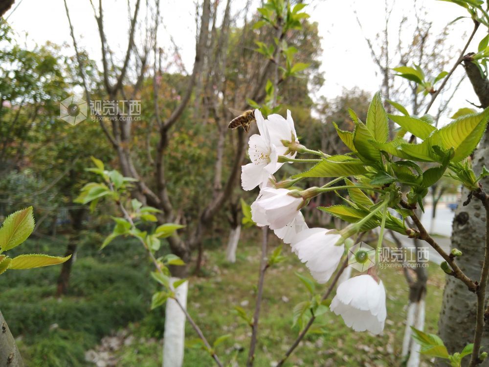 春回大地,百花争艳。近日,在江西永新县滨江路上,梨花和桃花竞相绽放。梨树上,梨花银装素裹,一丛丛、一簇簇,朵朵洁白的梨花展延枝头,随风摇曳,淡淡的清香,吸引了勤劳的小蜜蜂前来采蜜。桃树也不甘示弱,那一朵朵盛开的桃花,似一片片红霞,芬菲烂漫、艳丽娇媚。雪白的梨花与粉红色的桃花交相辉映,美不胜收,放眼望去,好似一幅轻笔淡墨的水彩画。