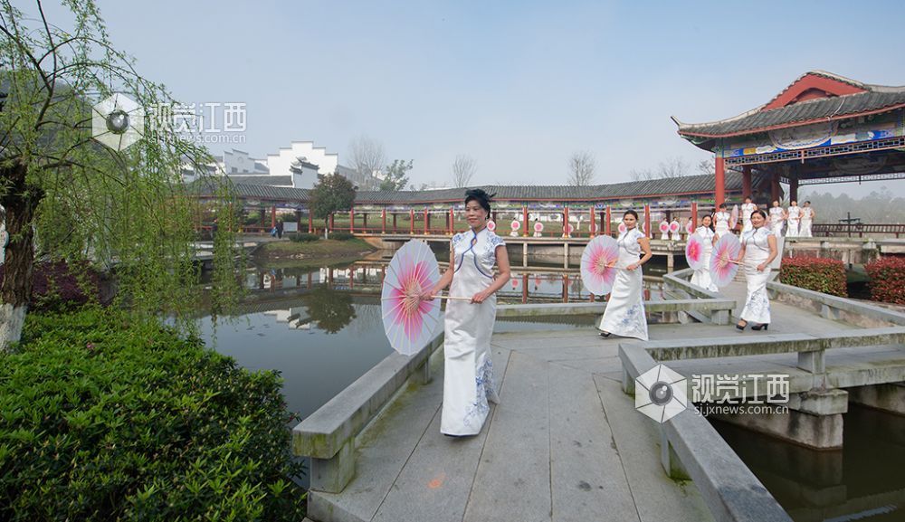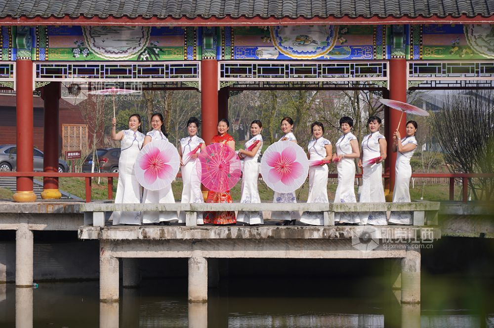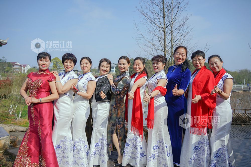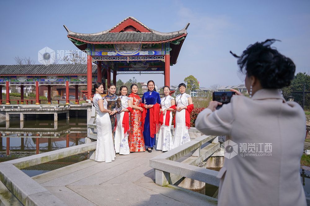2021年3月14日,江西省金溪县香樟公园开展“感党恩,赏春景,展风采”旗袍秀活动,展示旗袍文化,歌赞新时代美好生活。