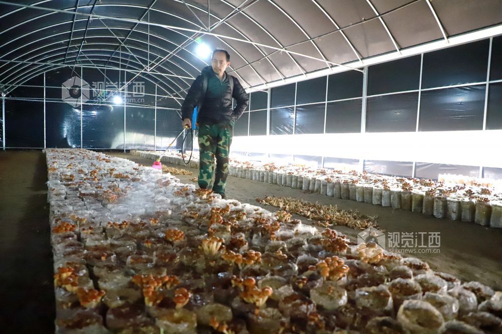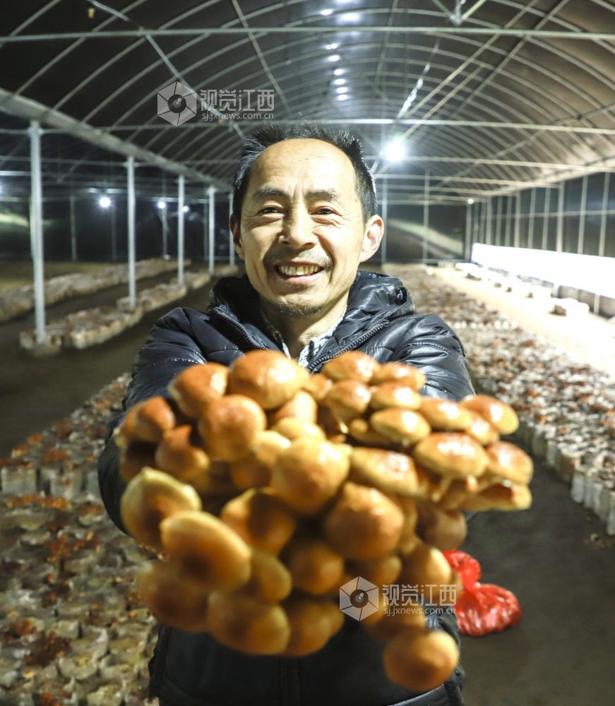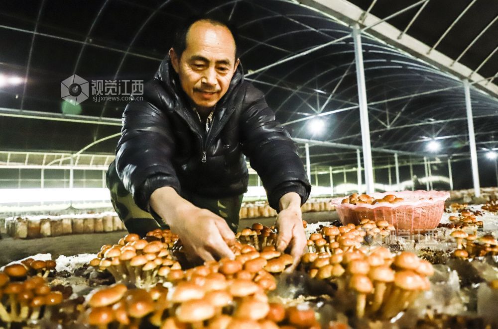 春分将至,气温回暖,江西省九江市湖口县张青乡程山村滑子菇种植基地,朵朵鲜嫩的滑子菇长势喜人,迎来采摘期。