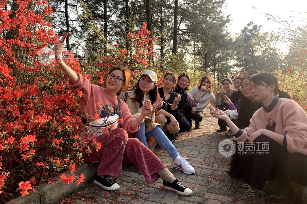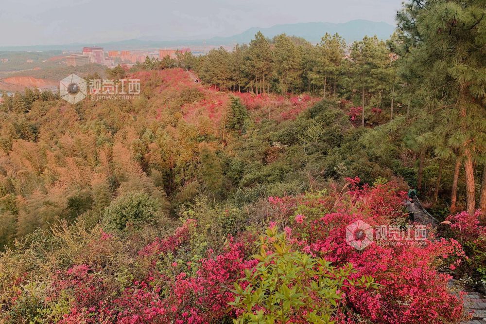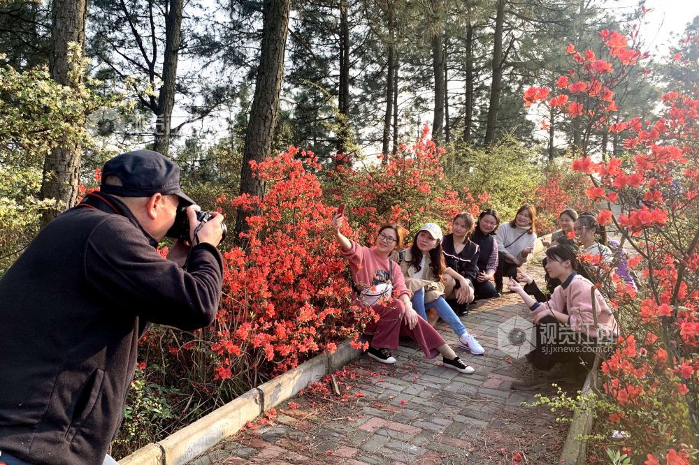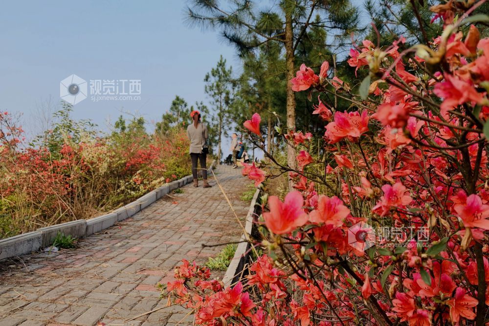 一场春雨过后,江西省吉安市峡江县巴邱镇黄泥岗村后山上漫山遍野的映山红竞相开放,娇艳欲滴,美不胜收,俨然一幅美丽乡村春景图,吸引游客前来观赏、拍照。