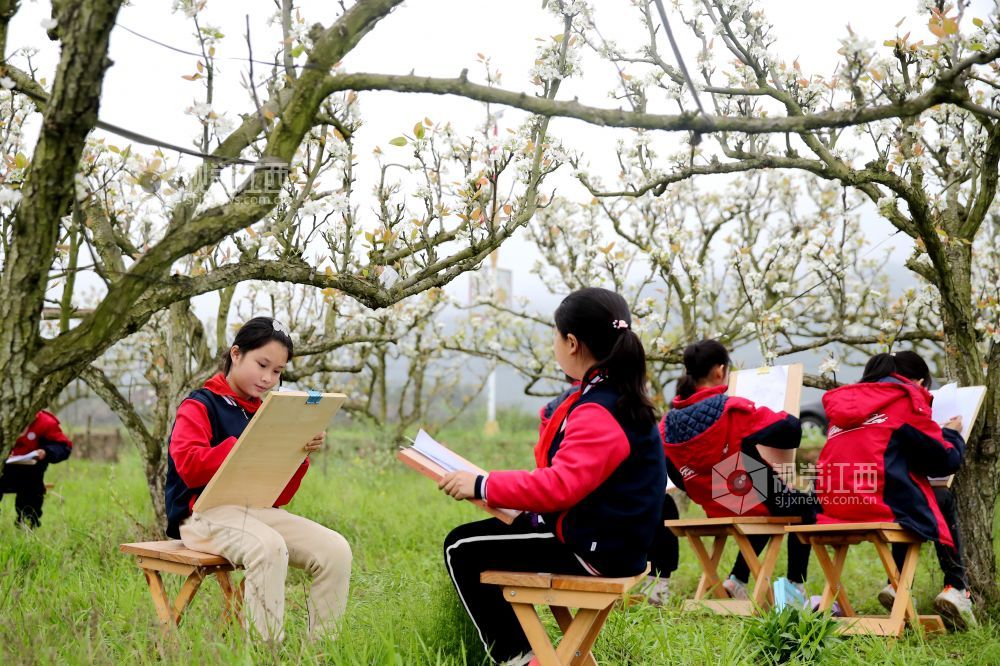 近日,当地千亩梨树进入盛花期,江西省吉安市峡江县金坪民族乡金坪中心小学组织学生走进梨园写生,感受春天气息,丰富农事知识。