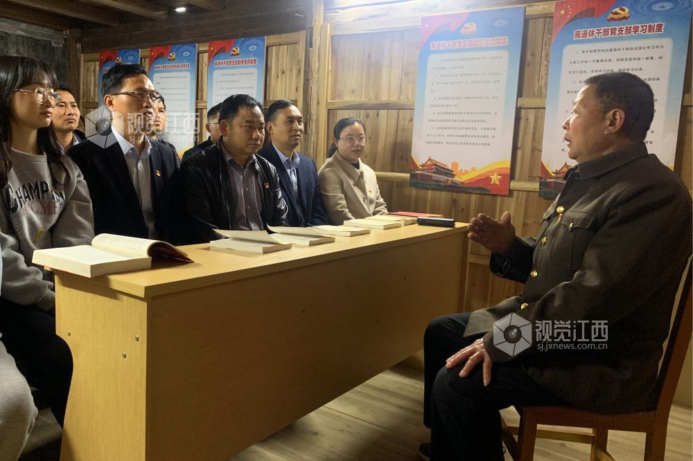 3月19日,在江西省吉安市峡江县仁和镇红三军团东渡赣江会议旧址,有47年党龄的老党员肖水根在为青年党员讲党史。