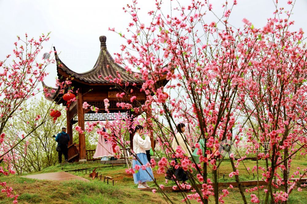 2021年3月20日,春暖花开时节,江西省吉安市吉水县桃花岛景区桃红柳绿美如画境,吸引了众多游客在这里踏春游玩,感受春天的气息。