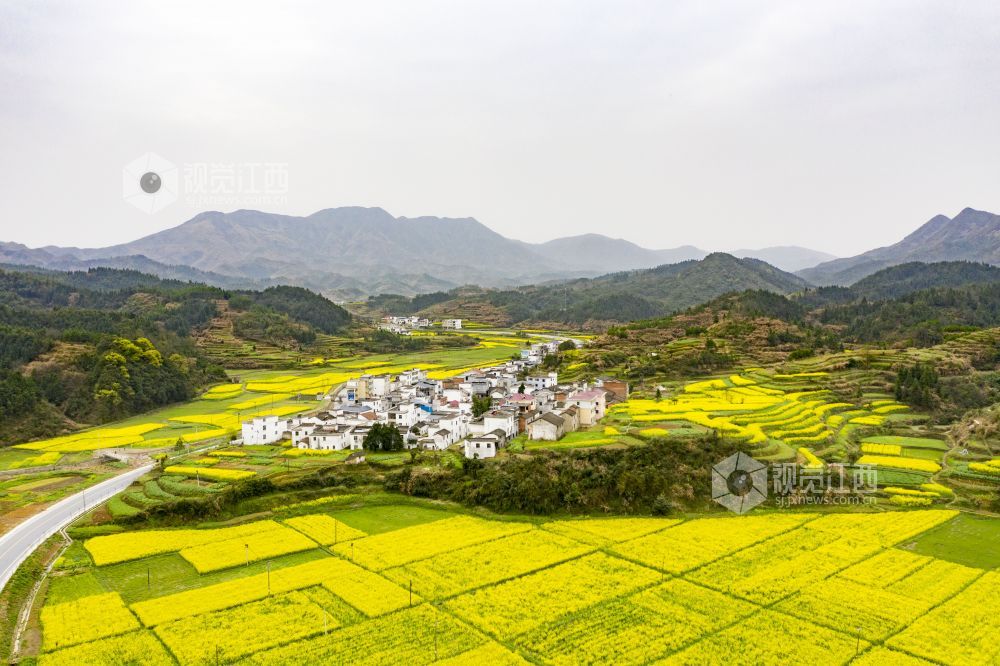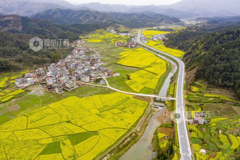 2021年3月21日,随着气温逐步回升,江西省瑞昌市花园乡油菜花已进入盛花期,群山环绕下,连绵不断的油菜花花开正艳,流金溢彩,金灿灿的油菜花和巍巍青山相互映衬,呈现别样的美景。