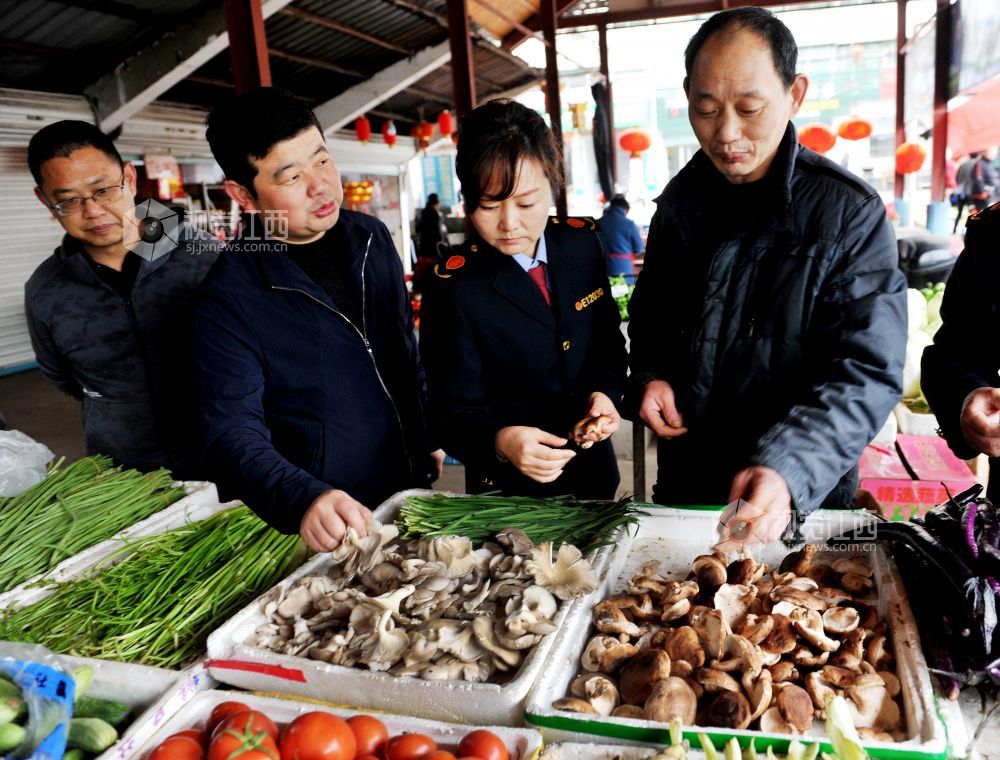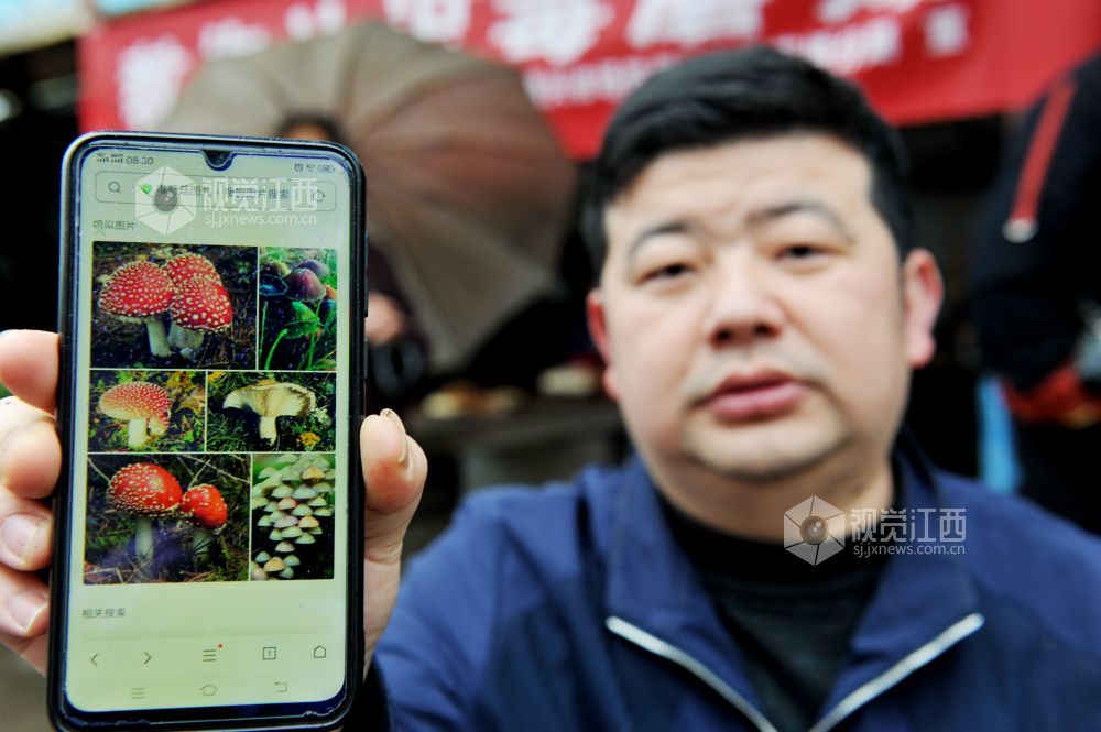 2021年3月20日,江西省德兴市花桥镇党员干部通过手机网络,在该镇农贸市场现场展示毒蘑菇图片,指导群众认知毒蘑菇。