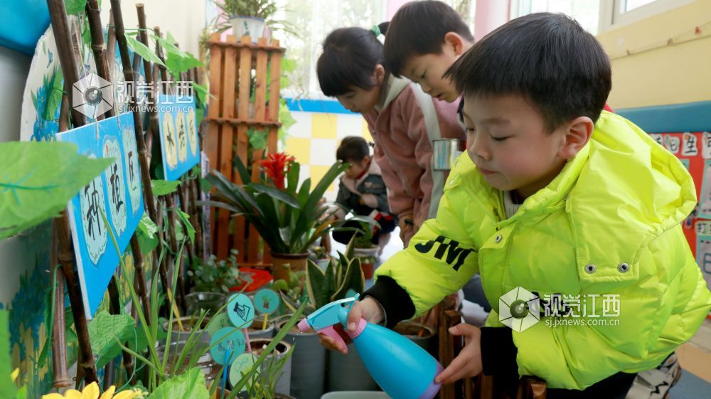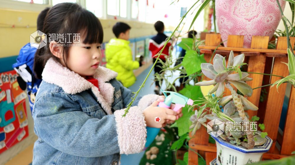 幼儿园的植物角是促进幼儿观察力发展、增长和丰富知识的途径之一,为落实科学发展观,培养幼儿“主人翁”意识,金溪县保育院结合各年龄段幼儿发展的特点,将植物角进行科学合理的划分。同时,引导幼儿收集各种废旧小瓶、小盒、绳子等制作喷壶、小铲、花盆;安排“小小值日生”定期给植物浇水、施肥、设计摆放位置,在幼儿积极参与的同时,培养幼儿的环保意识、观察力及动手能力,从而激发幼儿探索自然奥秘的兴趣和从生活中发现美的能力。