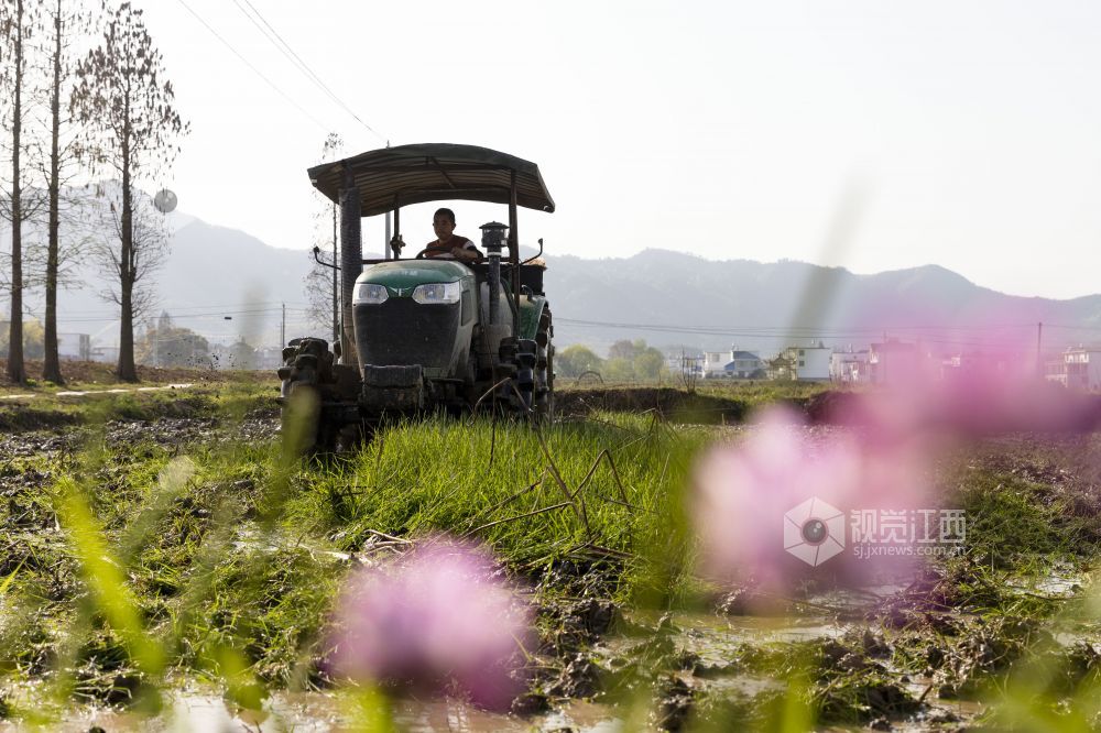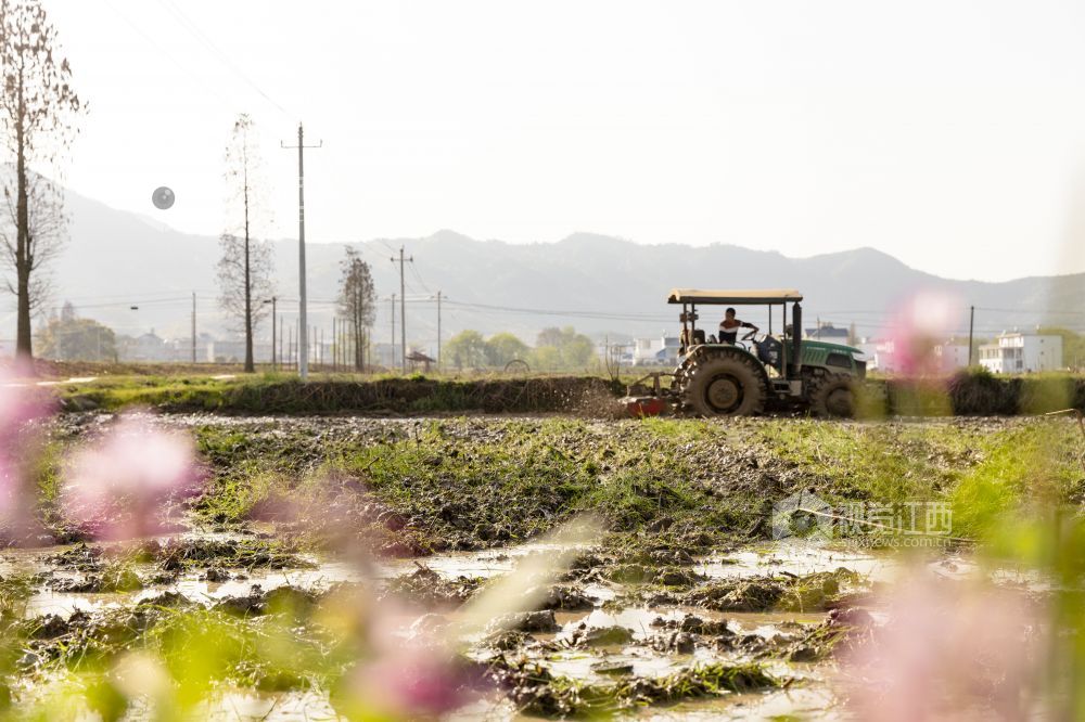 2021年3月24日,江西庐山市华林镇繁荣村高标准农田,农民驾驶农机正在春耕。 庐山市积极落实增产增收措施,推广新品种、新技术、新模式、新机制同时加强农资市场监管力度,净化农资市场全力以赴保障春耕生产顺利进行。