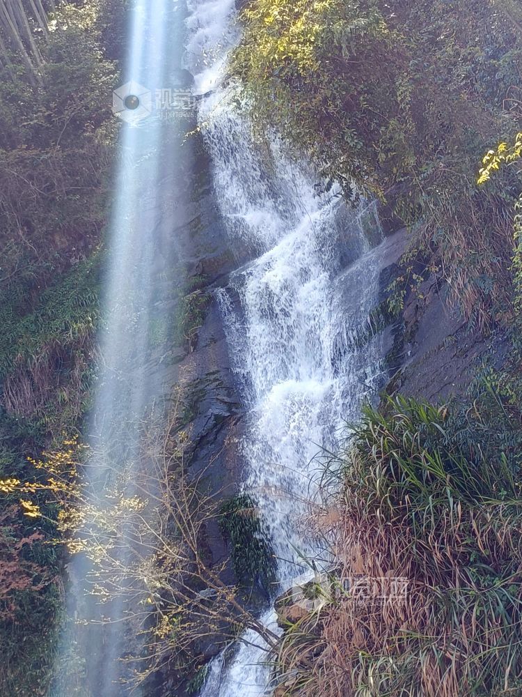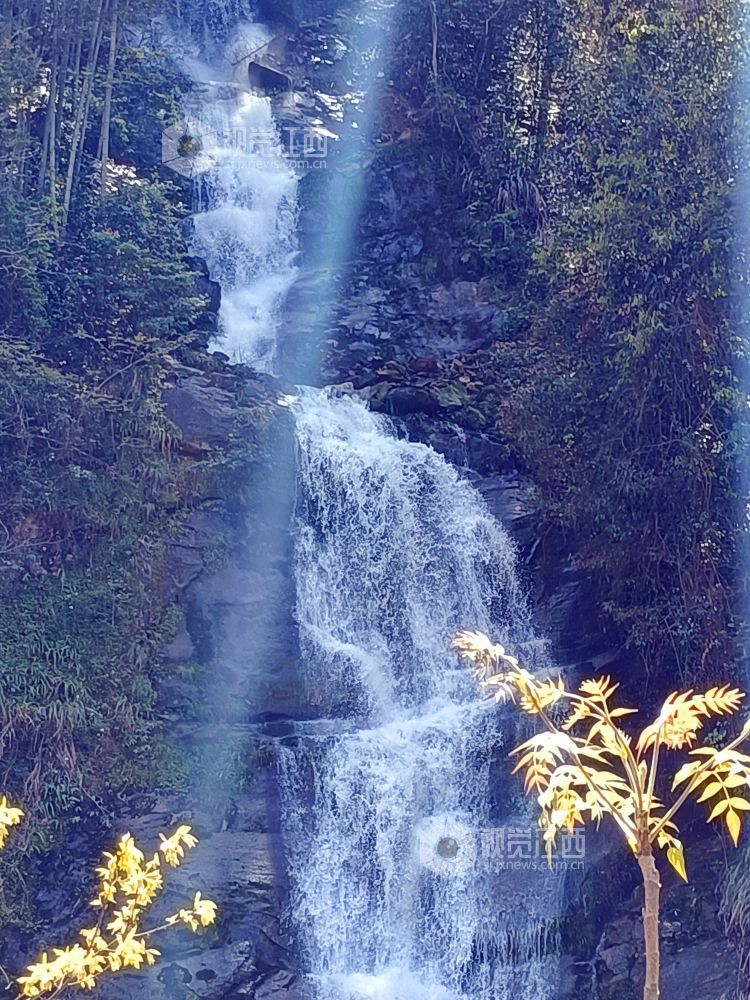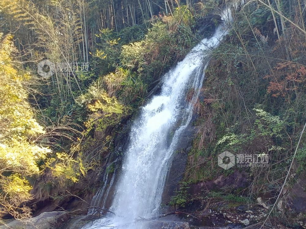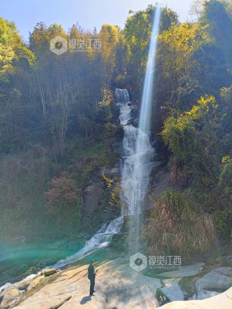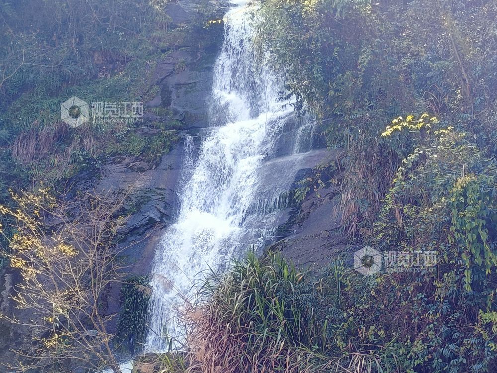春天,江西省安福县明月山林场三江林区最具特色和气势的当数飞瀑,数支飞瀑从高处跃下,声如雷鼓,似千军万马奔突之威、九天银河坠谷之势。在阳光的照射下,近看水珠如雨如雪,远看瀑布如百丈白虹,配上山崖上的红花绿叶,蔚为奇观。