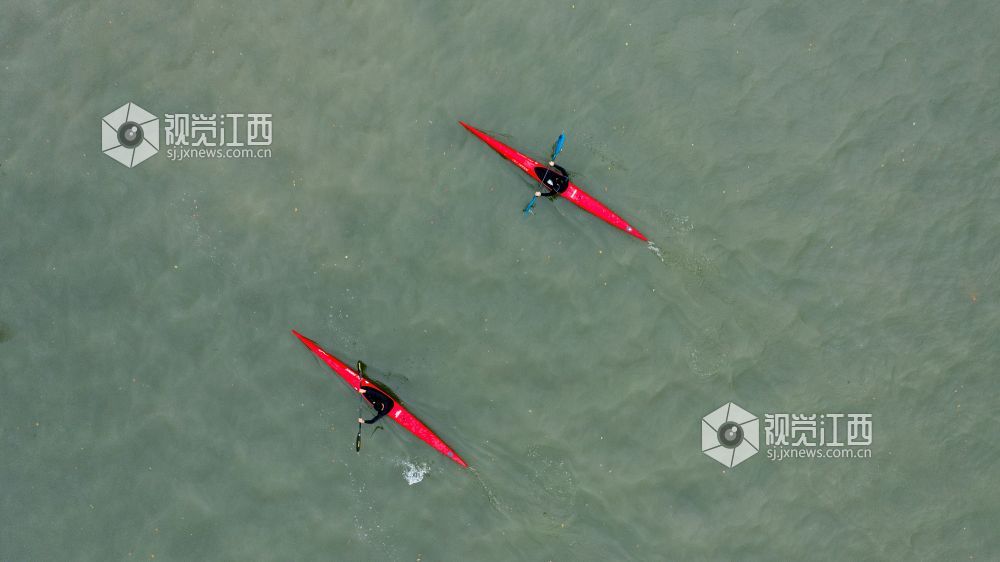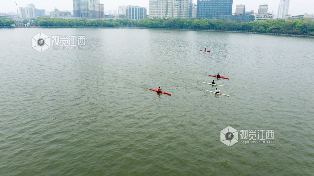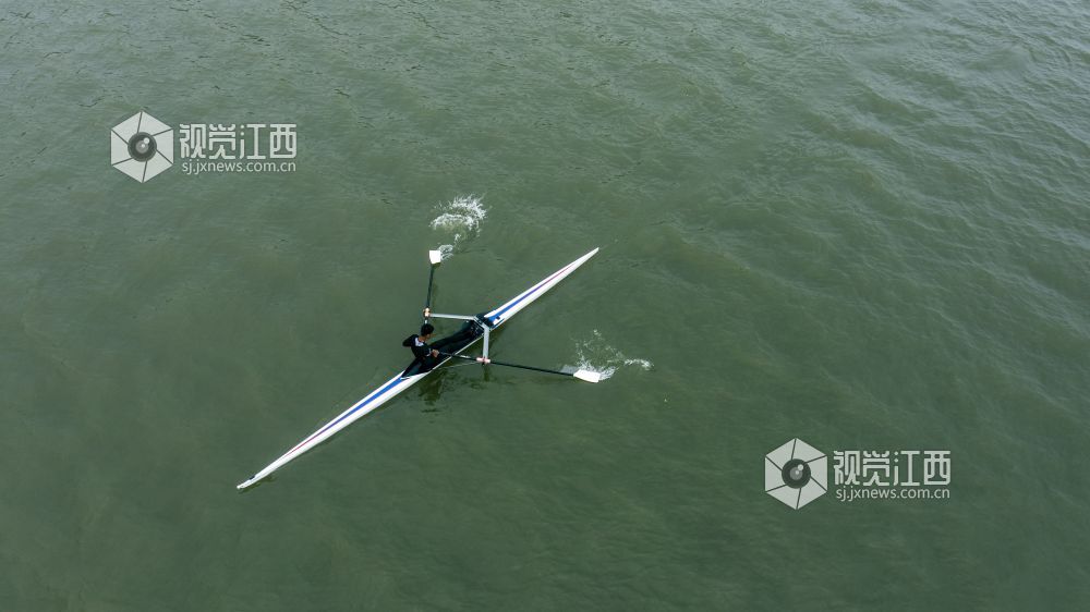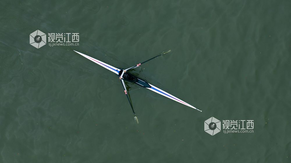 2021年3月27日,江西省南昌市青山湖畔-南昌赛艇运动中心,赛艇运动员正在集训,插桨、拉桨、出桨、推桨……运动员们动作一气呵成,姿态矫健,只见水面上一艘艘小艇飞驰而过。
