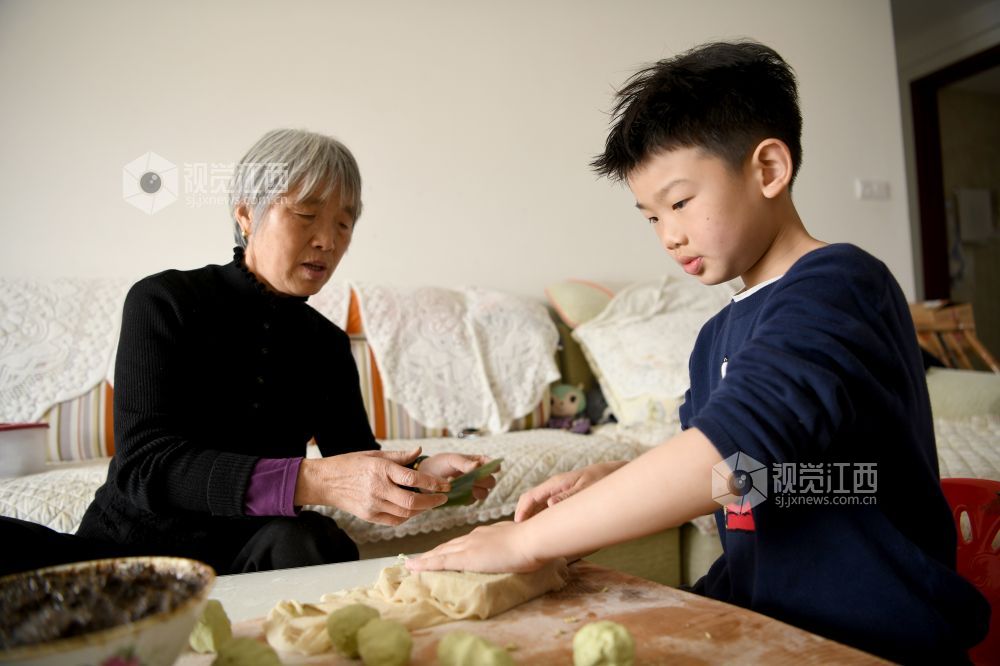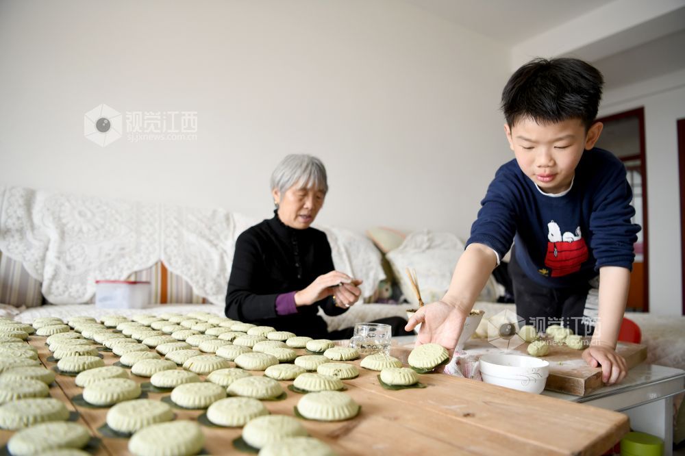 清明节期间,铅山县民间从古至今盛行着包清明果、吃清明果、用清明果祭祀祖先的习俗,老人通过手把手传授制作清明果,让孩子从小感受传统节日的魅力,增加对中华传统文化的了解。
