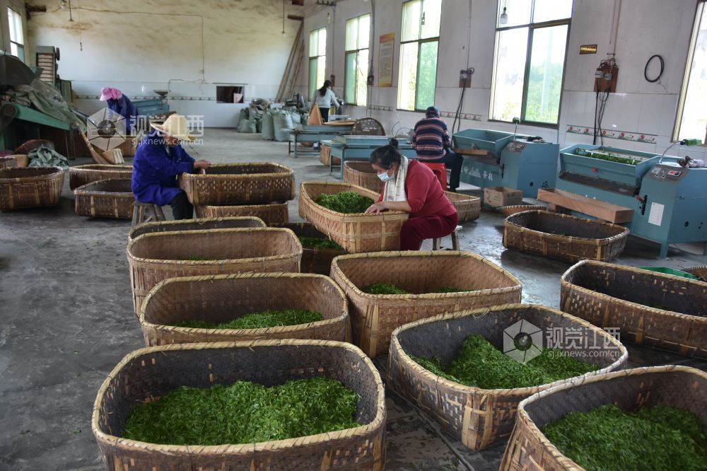 3月28日,江西省安福县武功山林场茶厂一片繁忙景象,制茶人员正在赶制春茶。