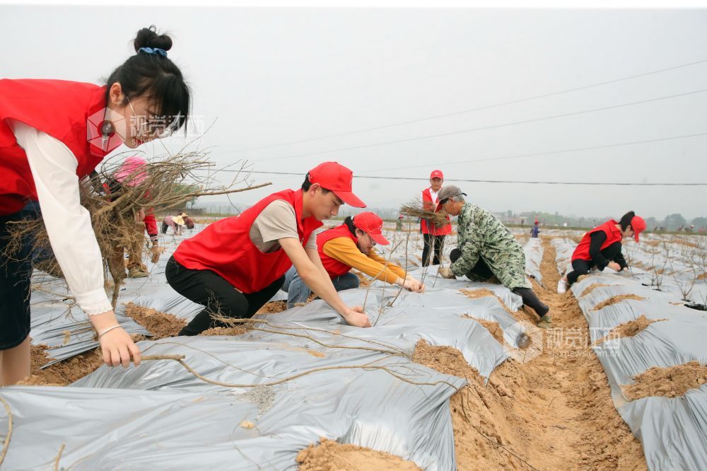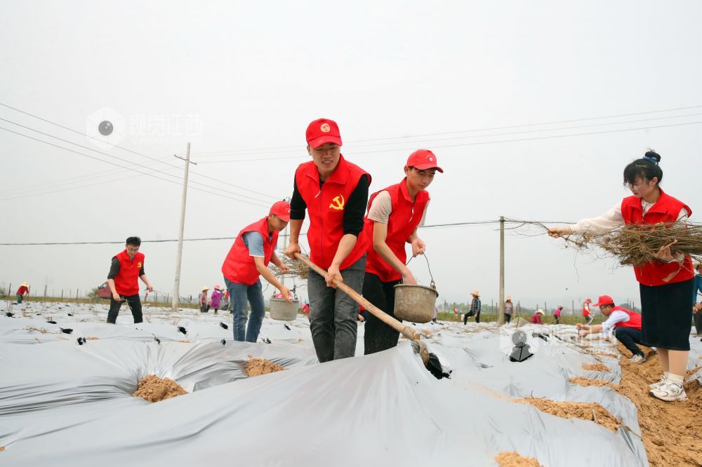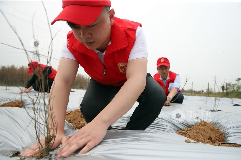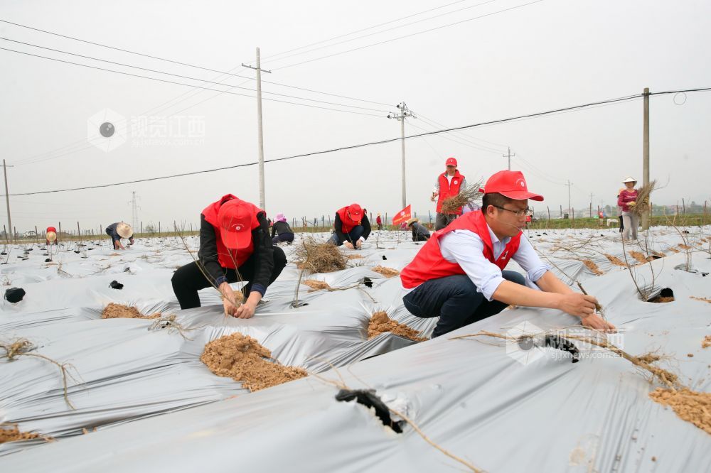 3月30日,江西省吉安市峡江县仁和镇党员志愿服务队来到官田村中药材种植扶贫产业基地,抢抓晴好天气,帮助村民种下中草药蔓荆子。