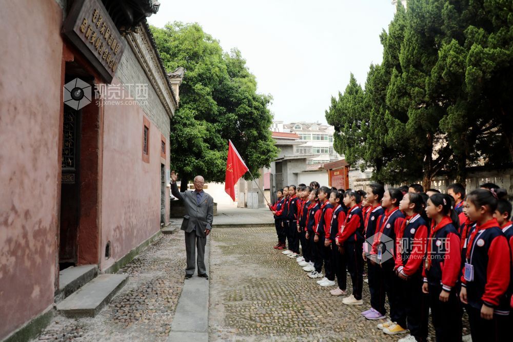 为庆祝中国共产党建党100周年,2021年3月31日,在江西省吉安市峡江县巴邱镇的峡江会议会址,拥有56年党龄、83岁的退休老干部毛本义面对面给巴邱小学学生上了一堂生动的党史课,让学生们从党史中汲取历史智慧,激发奋进力量,增强担当精神。