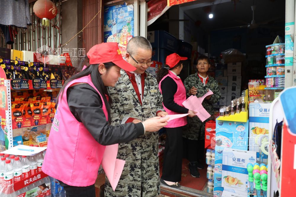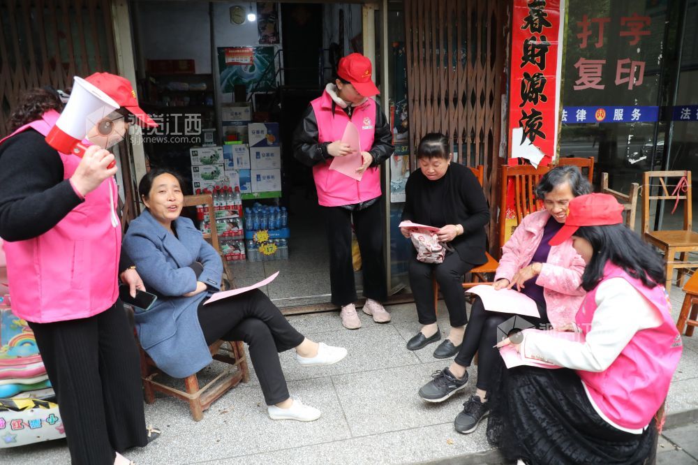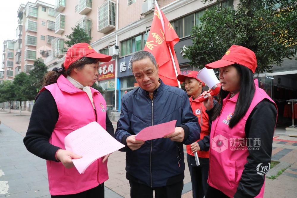 4月2日,江西省峡江县百花社区的党员志愿者向居民发放《清明节文明祭祀》 《禁止燃放烟花爆竹》宣传单。