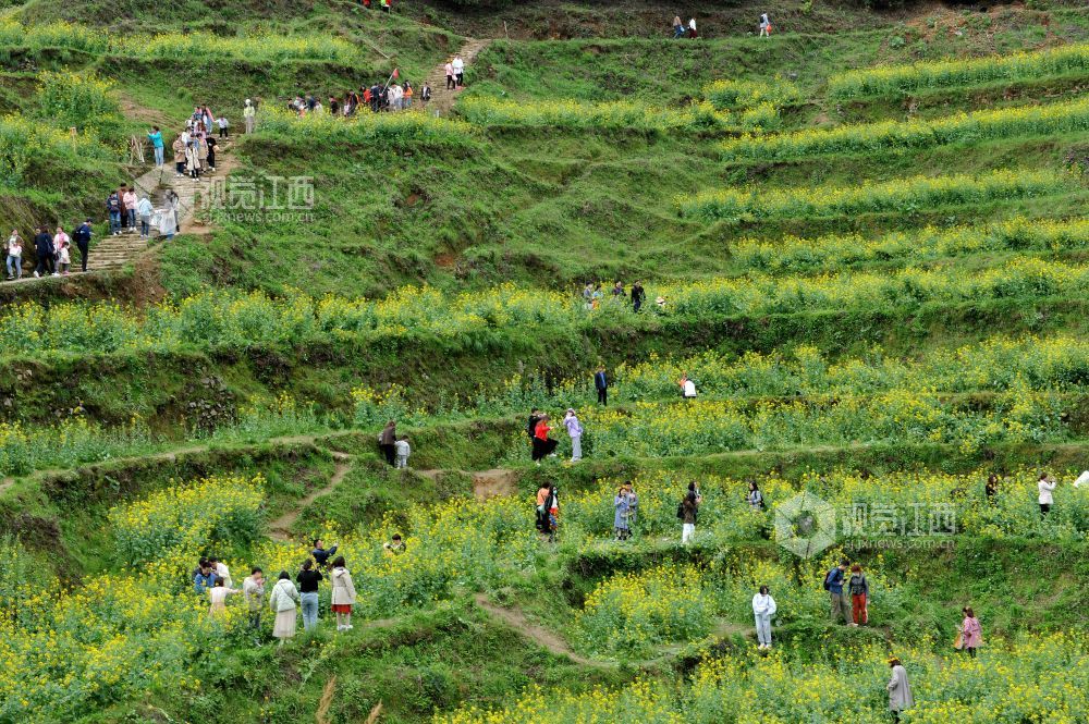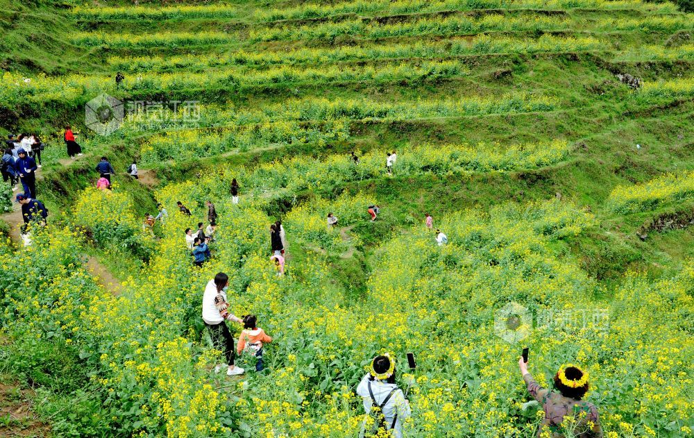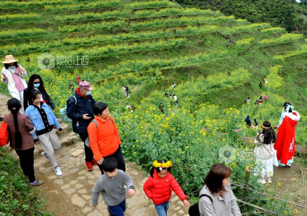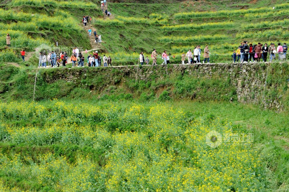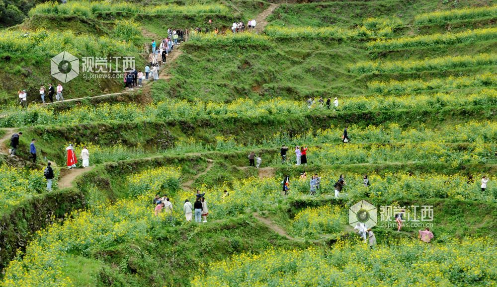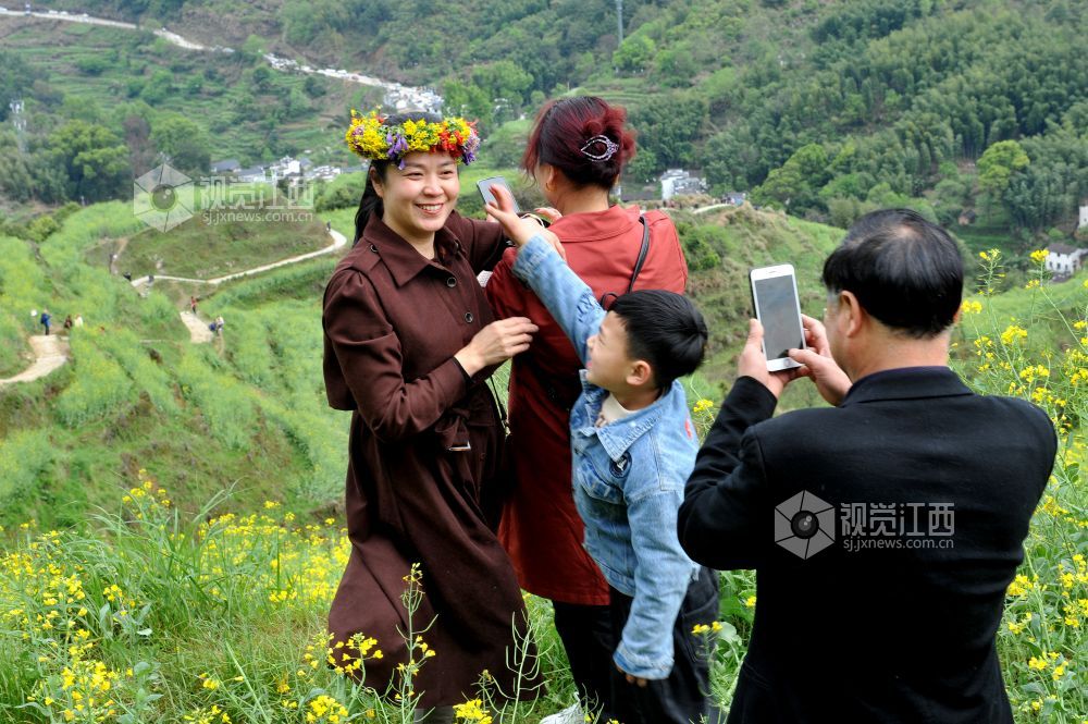 据了解,为了延长高山梯田油菜花观赏时间,婺源县篁岭景区通过利用改良油菜花品种和分批次错时种植来延长花开时间,从而吸引成千上万游客前来赏花观景。