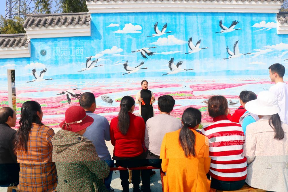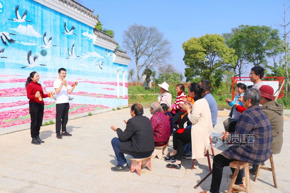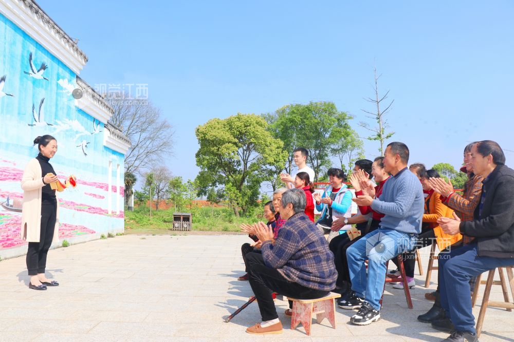 4月9日,江西省余干县康山垦殖场莲池村新时代文明实践广场,该场党史宣讲小组精心编写朗朗上口的快板词,通过快板表演为村民宣讲党史故事。