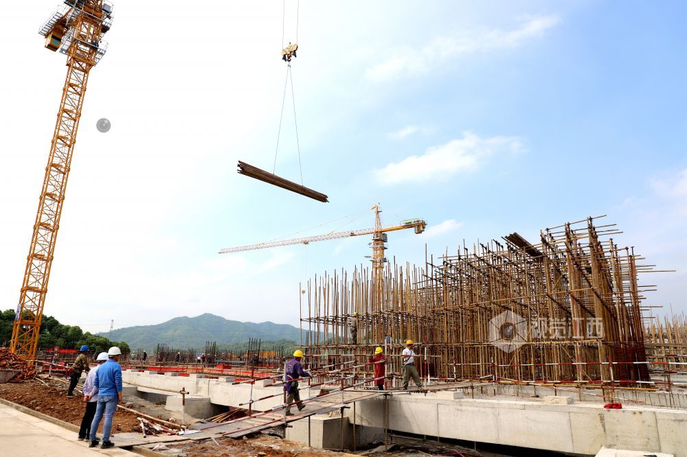 2021年4月23日,位于江西省九江市湖口县南北港的长江鄱阳湖水生物保护基地项目建设现场,工人穿梭,机械轰鸣。该项目总投资2.5亿元,占地面积约300亩,是湖口县推进“长江大保护”的重大项目之一。