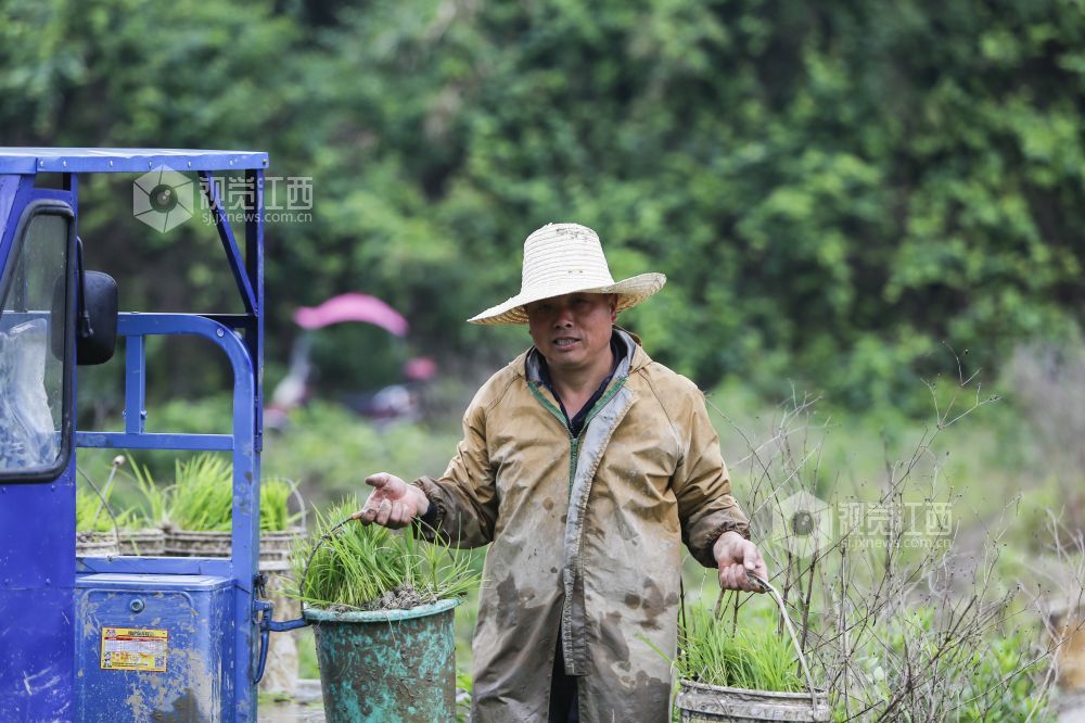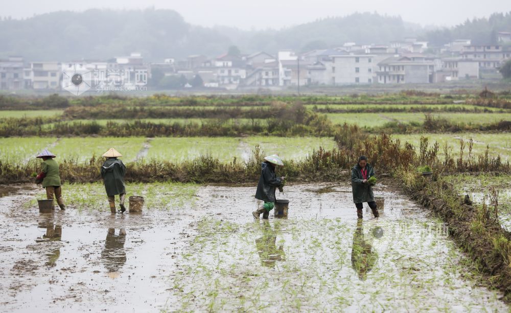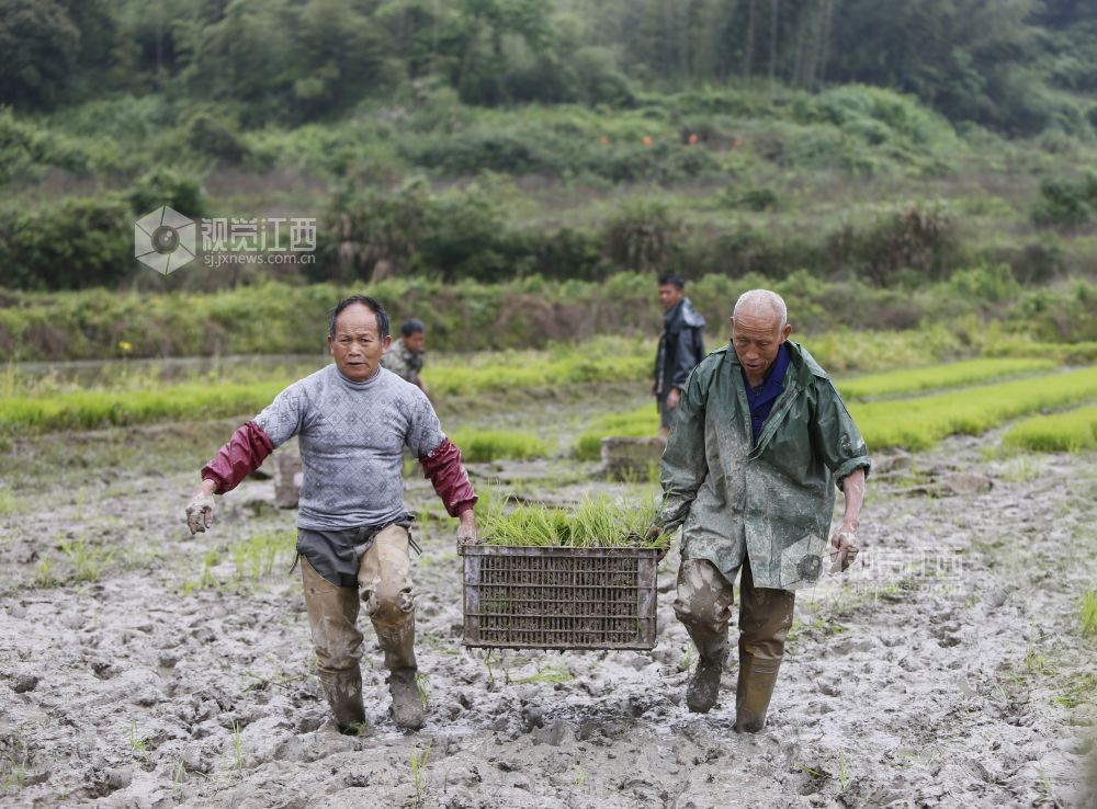 2021年4月26日,江西省分宜县洋江镇辑睦桥村田间地头上呈现一片热火朝天的春耕劳动场面。