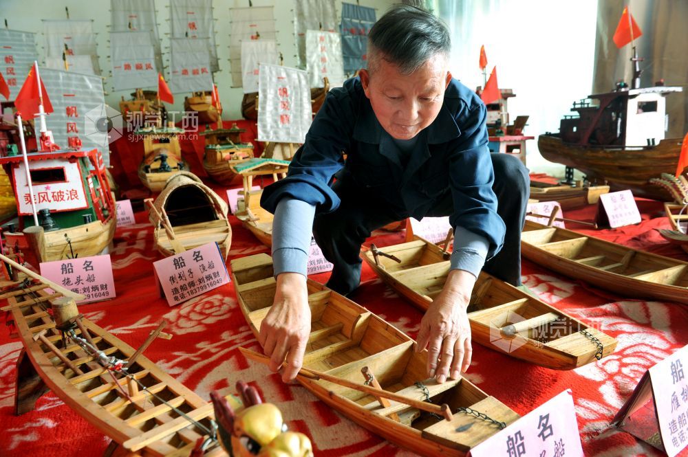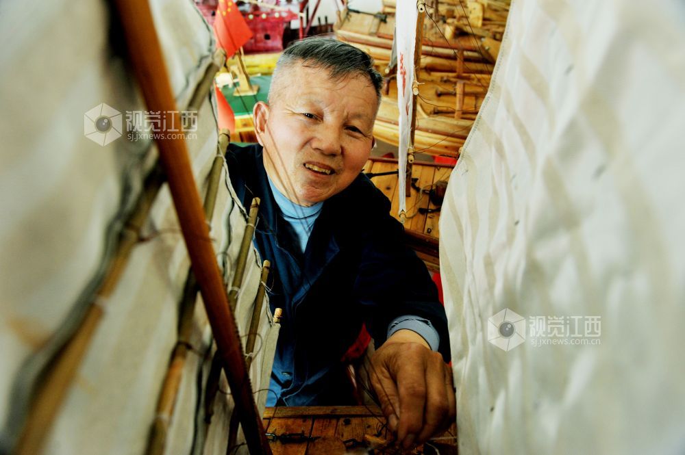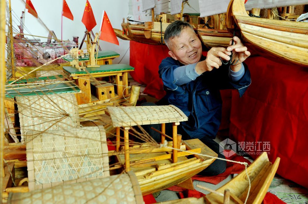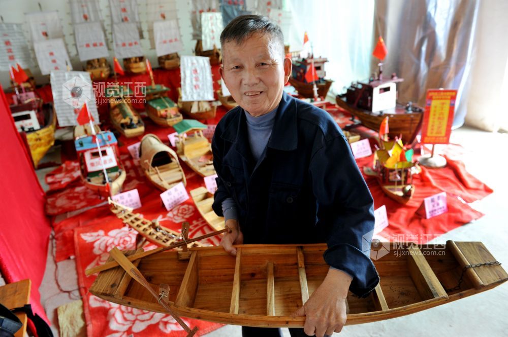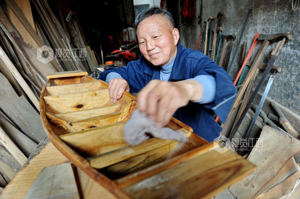 据了解,今年72岁刘炳财是江西省鄱阳县昌洲乡刘凤嘴村一名加工制作木船的老工匠,家中三代人都是制作传统渔船的工匠。18岁开始跟着父亲学习制作渔民捕鱼木船,至今已有54年。几年前,我国最大的淡水湖鄱阳湖实施区禁捕退捕后,放不下老手艺的刘师傅不忘自己制作传统木船技艺情节,自费又全身心地投入到微型渔船手工制作上,两年来,他利用农闲时间,已累计制作龙舟凤船、渔船帆船等各类微型木船模型40余艘。