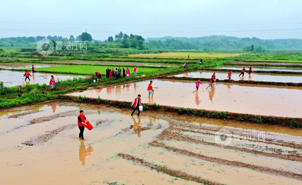 江西省吉安市吉水县尚贤乡,有一支由青年党员干部组成的志愿服务队,他们常年活跃在各村组的田间地头,为困难群众和劳动力缺乏户提供劳动帮助。春耕春播最忙时节,红马甲们赤脚下田,为群众春播春种,成为乡村一道靓丽的风景线。