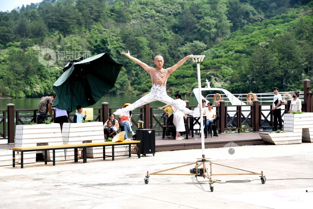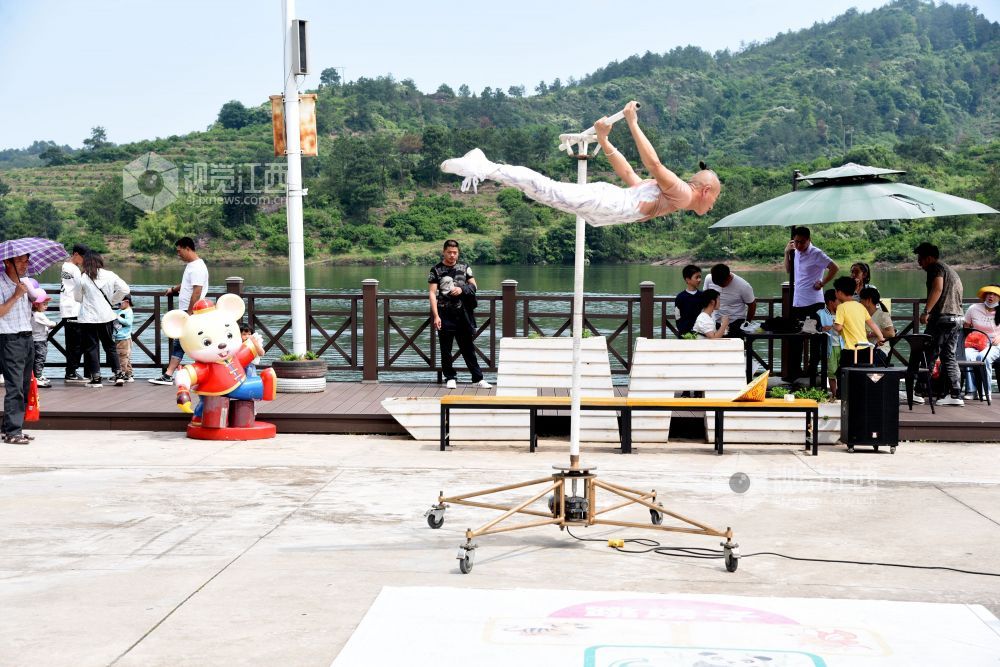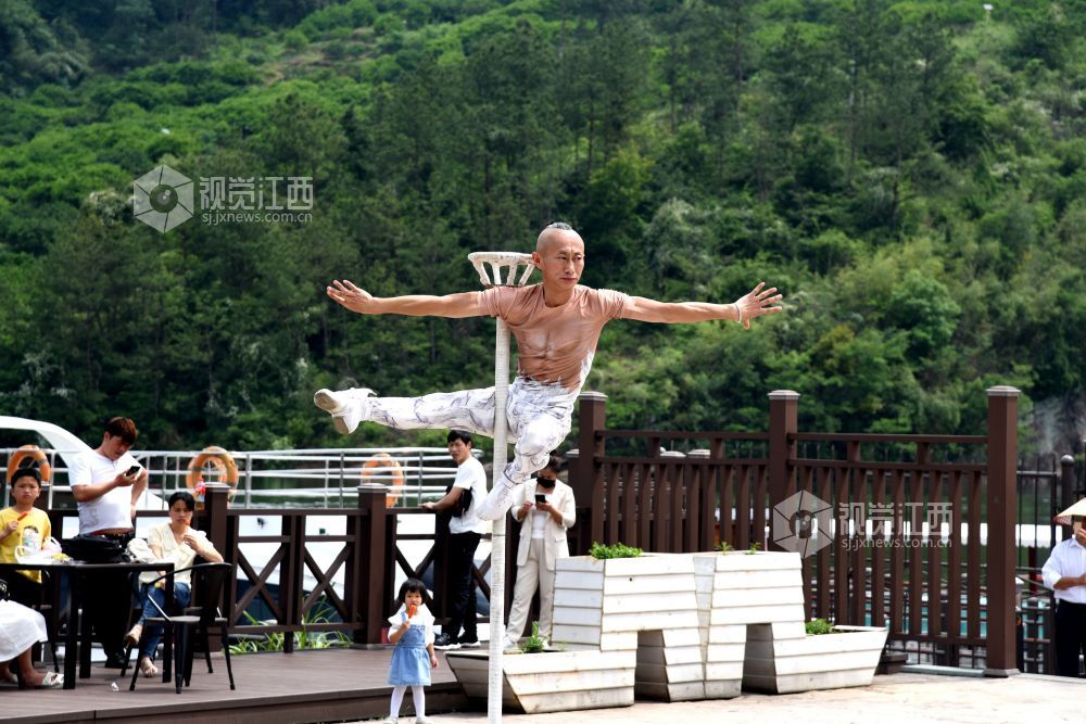 2021年5月1日,江西省抚州市南丰县观必上水上乐园、码头、橘子餐厅广场迎来一波波游客,丰富多彩的特色表演吸引游客眼球。五一假期,南丰县观必上景区为游客安排了丰富多彩的节目,有川剧变脸、茶艺表演、游船观光、南丰傩舞、大唐不倒翁、竹竿舞、角色扮演、星光大道网红夫妻表演等,往来的游客纷纷驻足欣赏,感受欢快祥和的节日气氛。