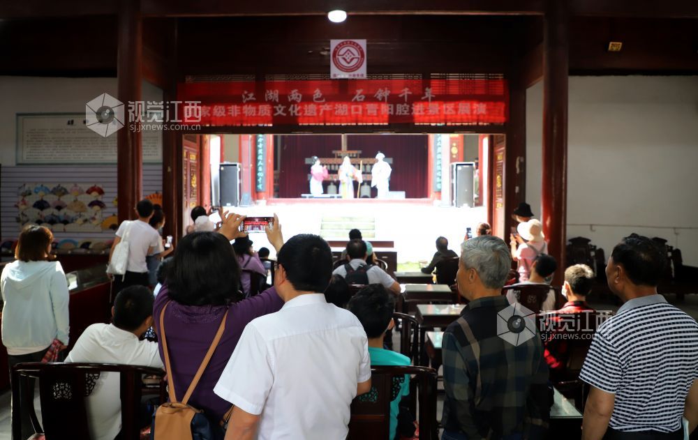 “五一”劳动节假期,湖口县举行“江湖两色 石钟千年”国家级非物质文化遗产湖口青阳腔进景区展演活动,将演出青阳腔、黄梅戏等传统剧目,不仅给游客送上文化大餐,客近距离感受戏剧魅力,也让游客过足了戏瘾。