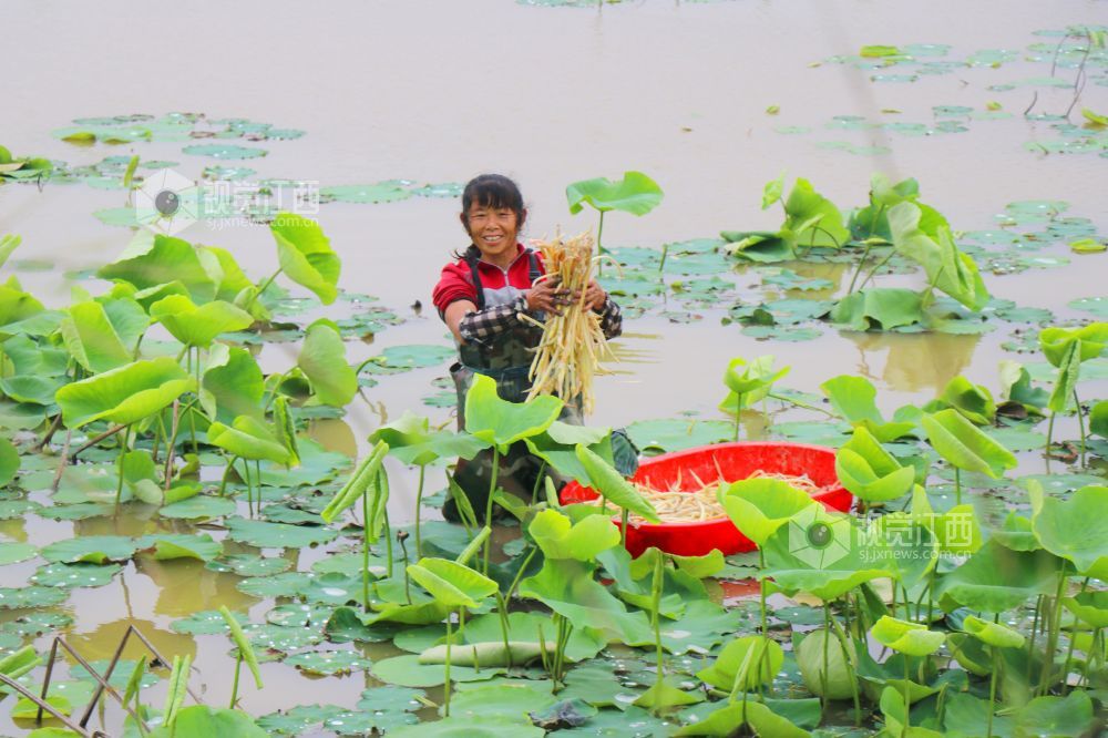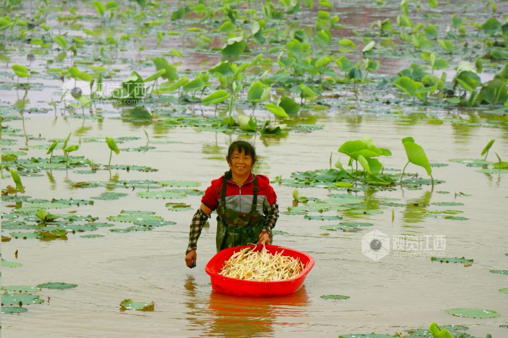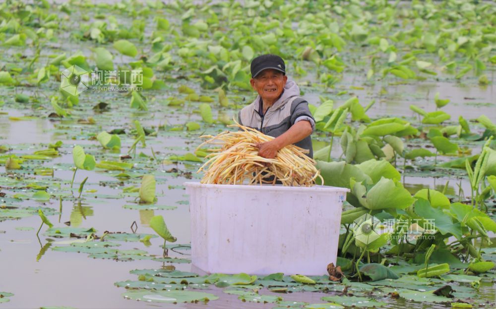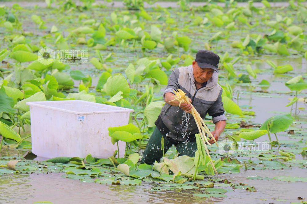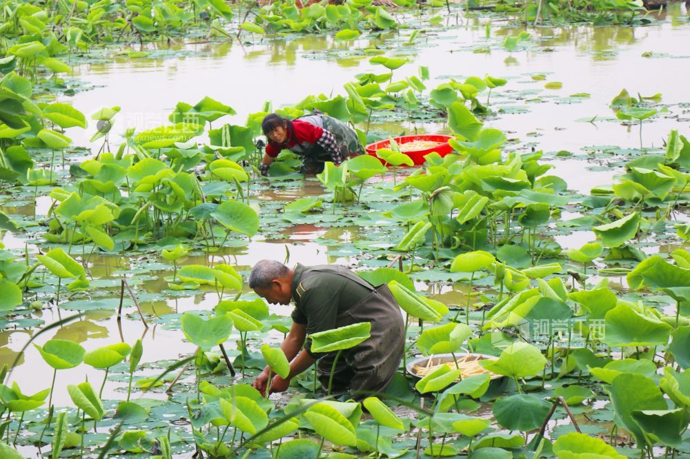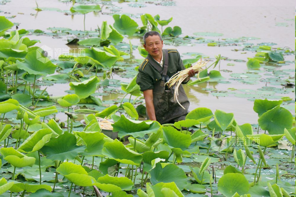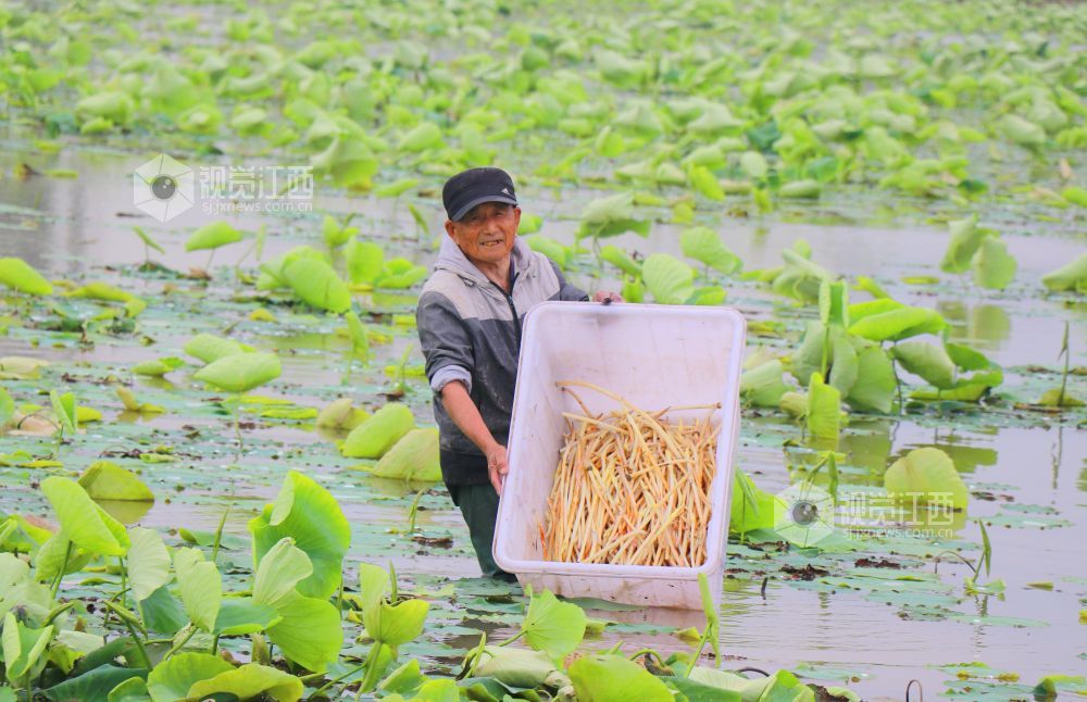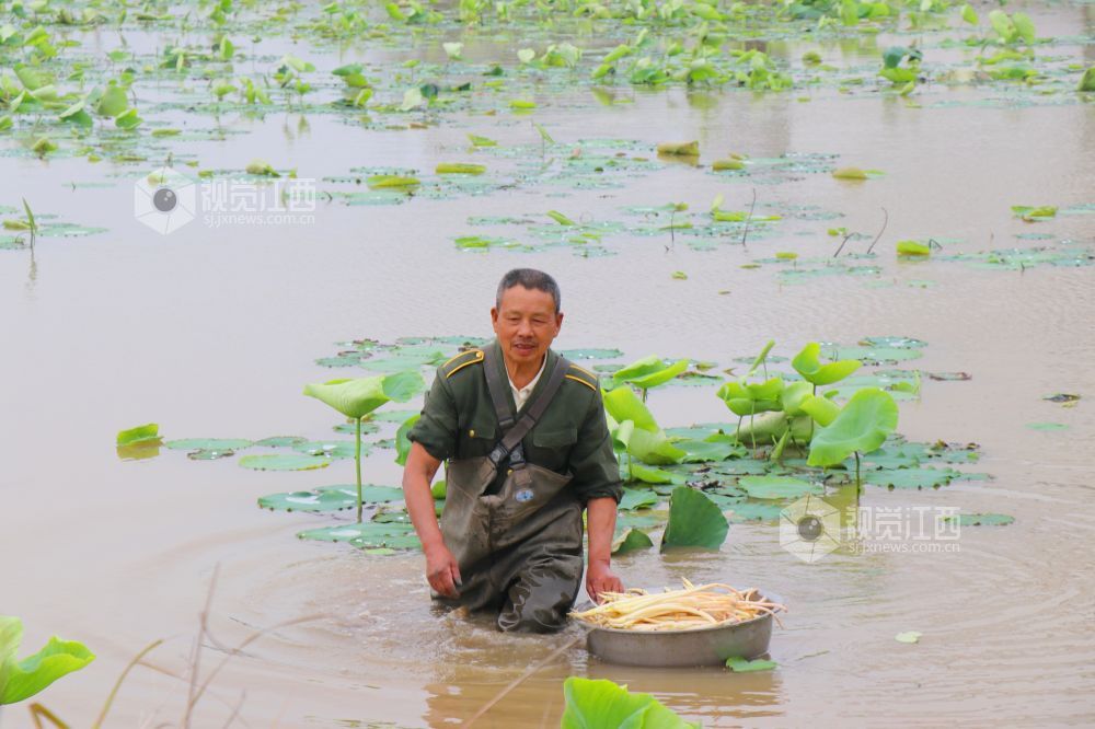 江西余干:新鲜藕带釆收忙