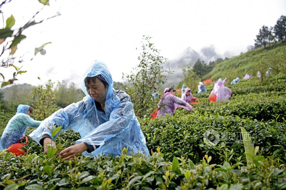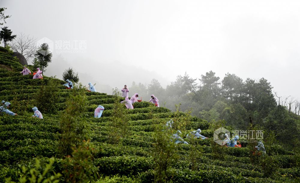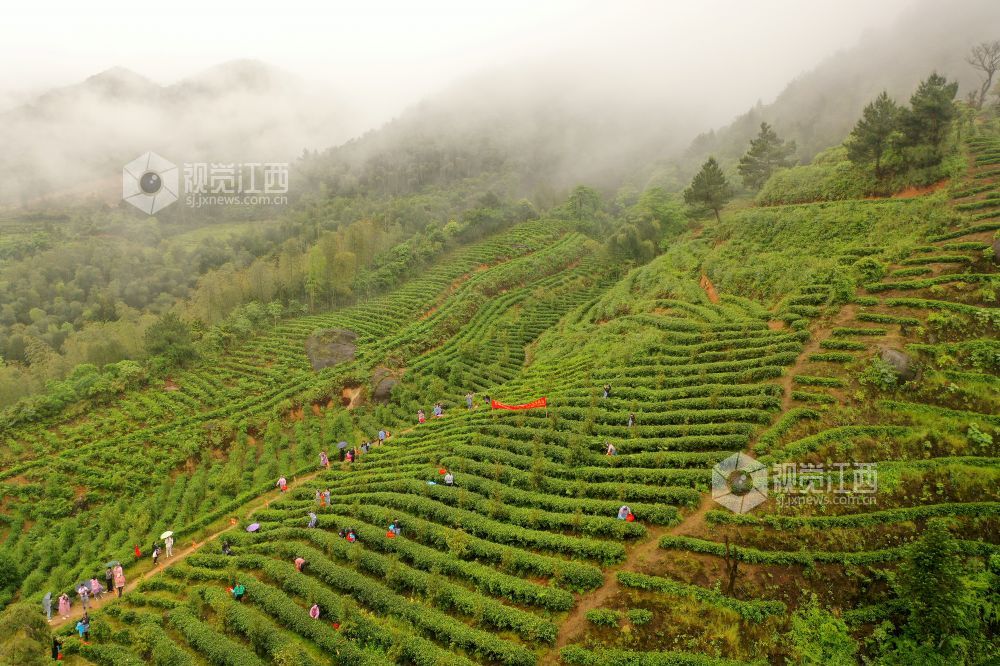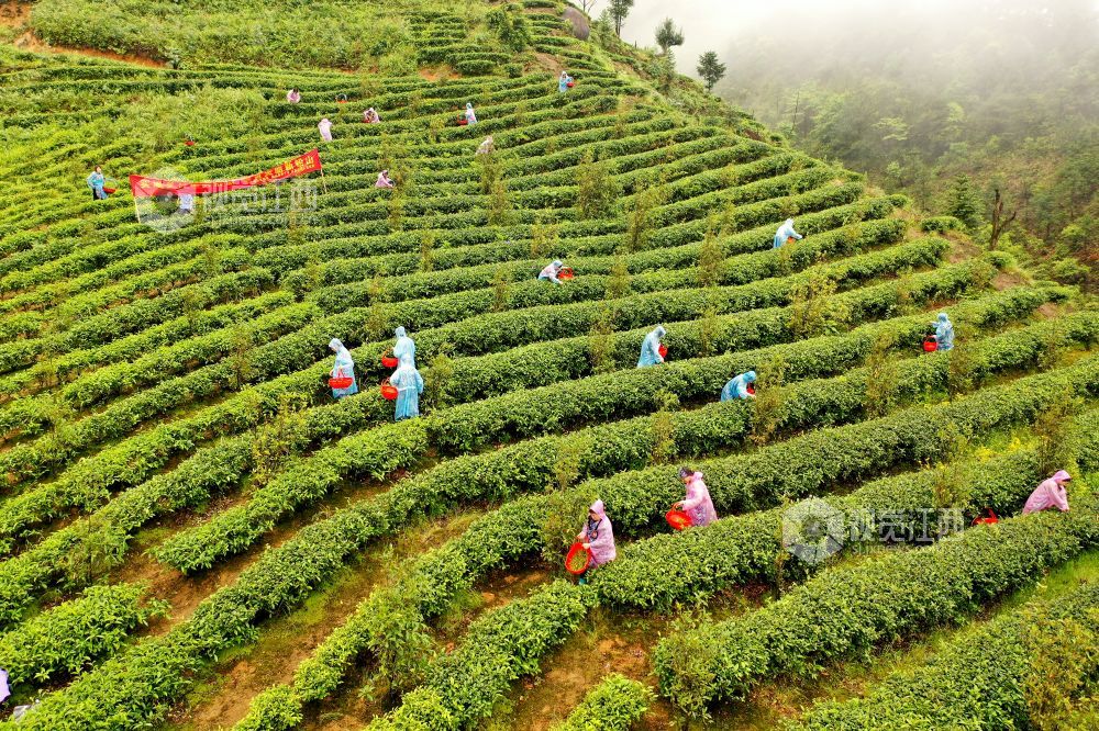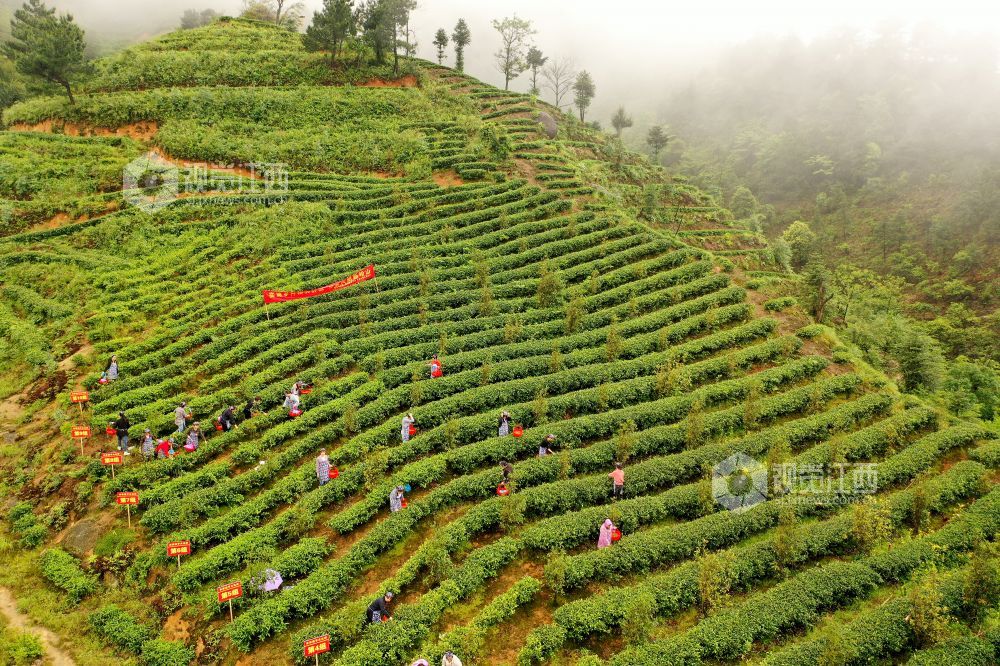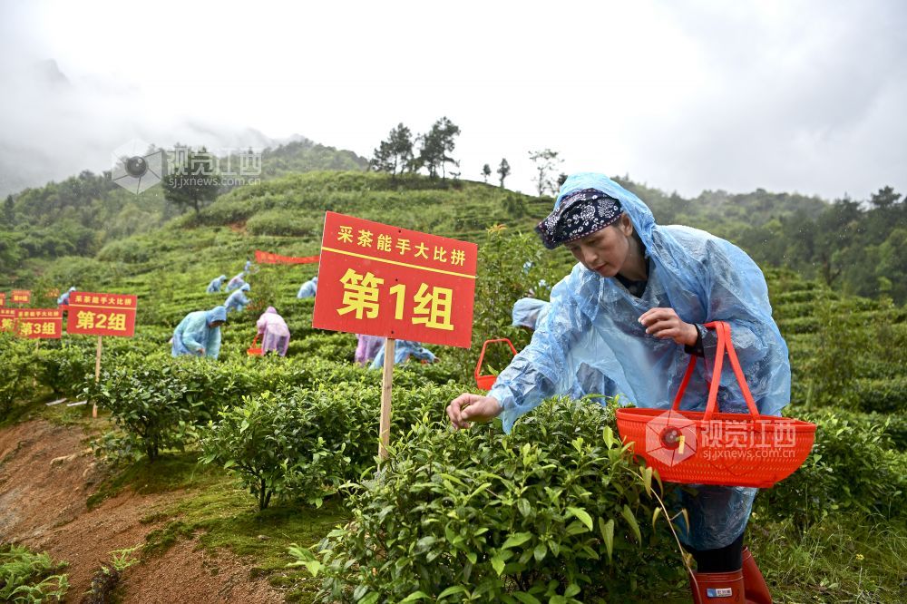 2021年5月7日,在江西省上饶市铅山县武夷山镇仙山岭,采茶能手正在无公害生态茶园进行采茶比赛。