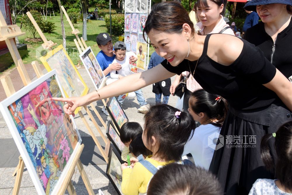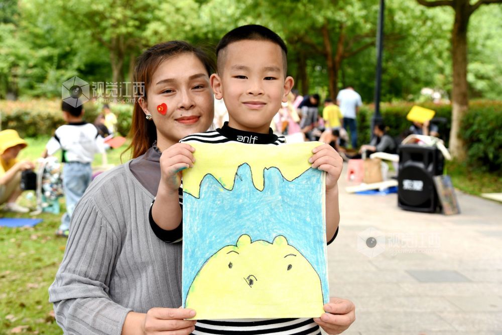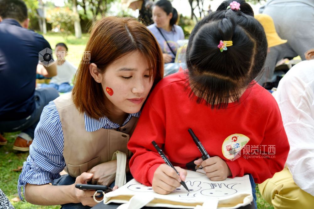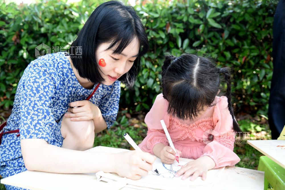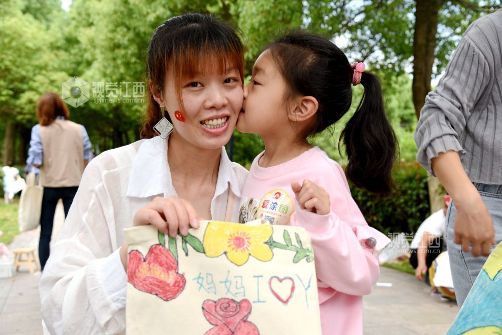 2021年5月9日,在江西省抚州市南丰县醒侬公园,孩子们正在彩绘帆布包,迎接母亲节的到来。