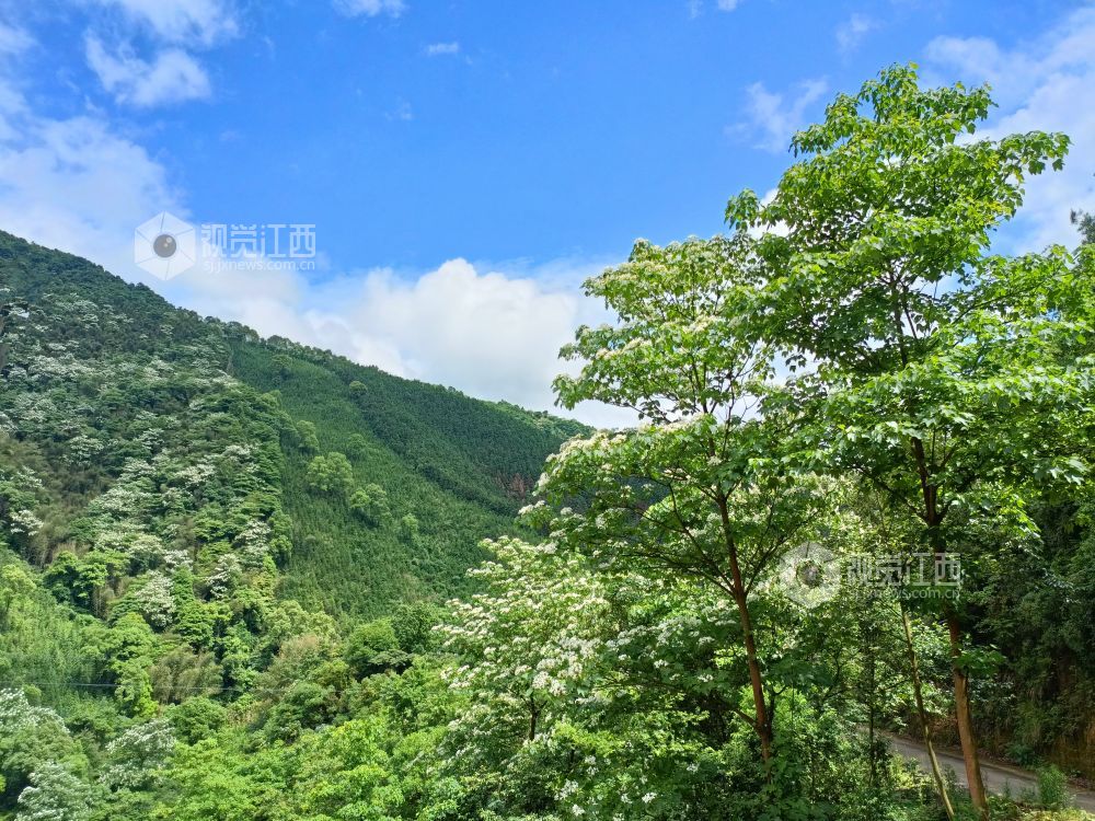 每年五月,是江西省安福县明月山林场北山林区最美丽的时节。走在山道上、河道旁,万亩青山开满洁白如雪的油桐花,花絮飘飞,宛如白雪,漫天飞舞,一树树“雪”景引人留连忘返。