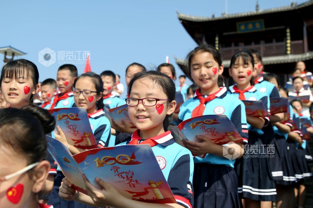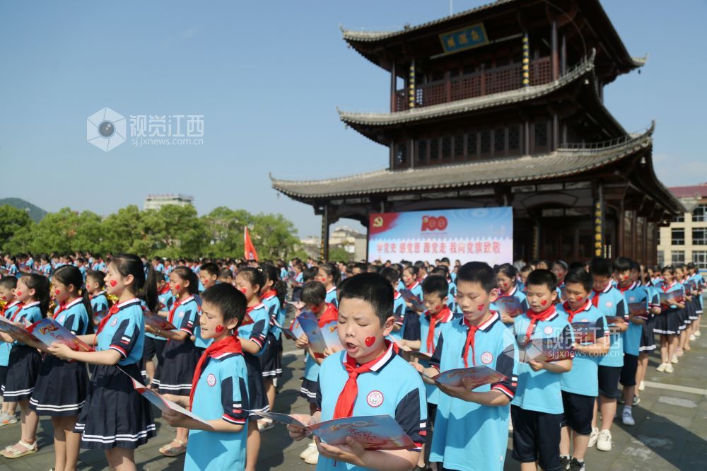 当日,江西省吉安市峡江县巴邱镇巴邱小学举行“学党史 感党恩 跟党走 我向党旗致敬”党史学习教育经典诵读活动,400多名学生集体吟诵了《沁园春·雪》《七律·长征》等红色经典诗词,表达了对革命先烈的敬仰和对祖国的热爱之情。