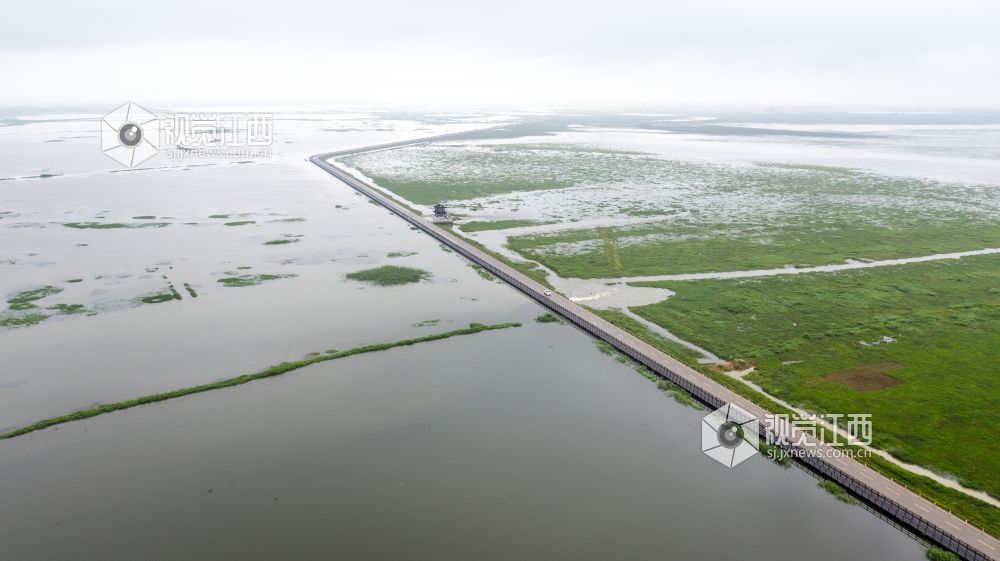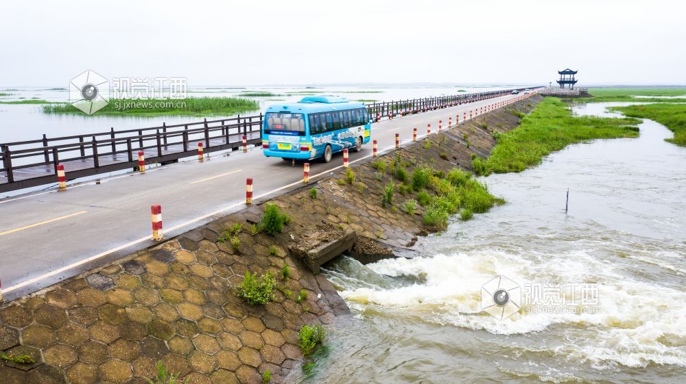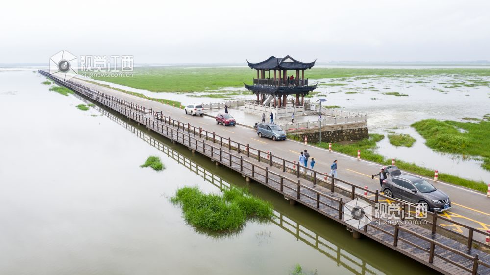 20121年5月22日,上午9时许,江西省九江市永修县吴城镇永吴公路段,受持续降雨影响,鄱阳湖水位全面上涨,比往年同期水位提前约2个月左右。据当地人员介绍,如此持续1周降雨将出现水上公路场面。