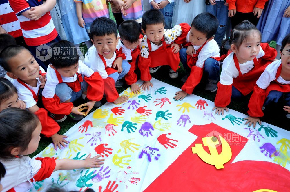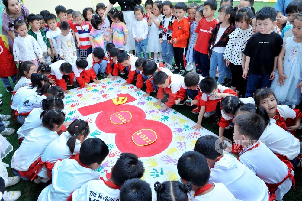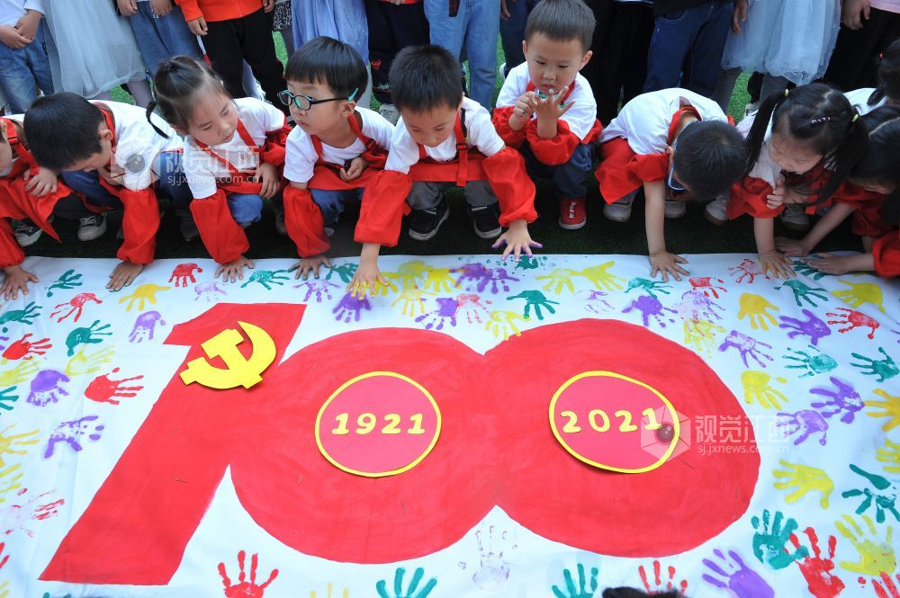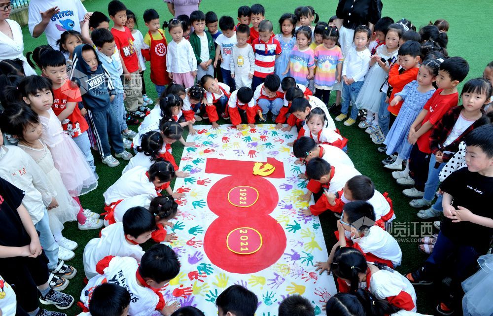 据了解,这是江西省德兴市城南幼儿园围绕今年是中国共产党建党100年,开展了“童心向党谢党恩,礼赞百年表真心”活动。上百名幼儿在老师的指导和帮助下,用自己的小手印制了一幅五彩手掌印表语,旨在强化孩子们从小爱党爱国启蒙教育的养成,以此迎接中国共产党百年华诞的到来。