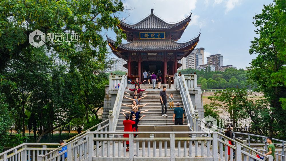 俯瞰白鹭洲书院,只见绿意满眼。许多市民纷纷来到这里,走一走廊桥,看一看江景,皆是春意,风景如画。该书院培养造就了文天祥、刘辰翁、邓光荐等著名人物。书院兼为县学,经历代修葺扩大,古迹犹存。风月楼高三层,雕梁画栋,雄伟壮观。站在书院顶端,只见江流浩荡,令人心旷神怡。