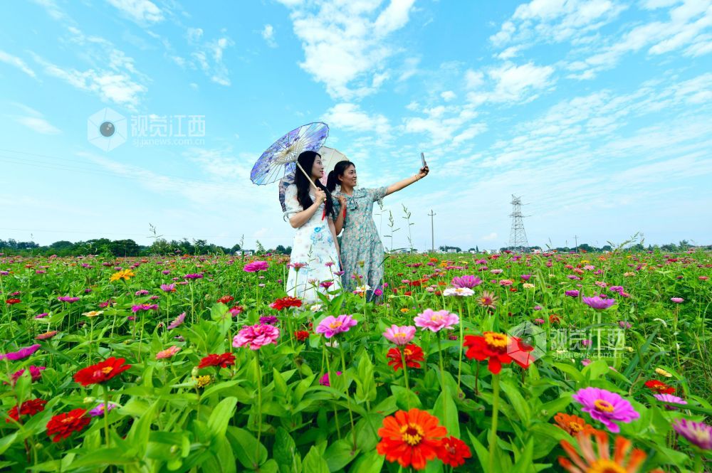 江洲镇洲头村花之海景点位于该村原洲头小学附近,景点由向日葵区、格桑花区、草区、桃花区等四个区域组成,景区内种植的向日葵区、格桑花、百日草目前花开正旺,吸引不少游客前来观赏游玩。