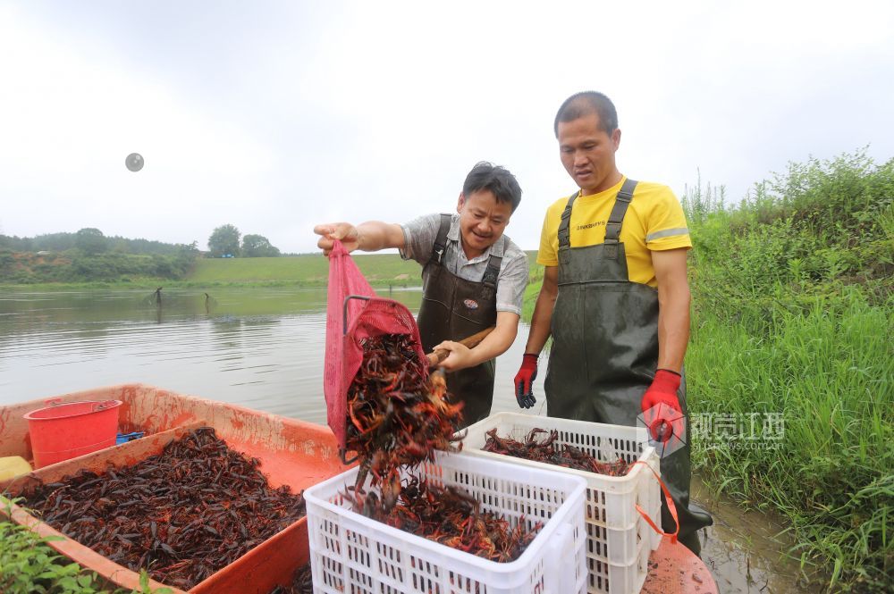 小车村稻虾共作基地规模1000亩,是“全国农业重大技术协同推广示范基地”,也是该县农业农村、科协、财政等部门重点扶持的乡村振兴产业基地。目前,正是小龙虾高产期,刘新益带领基地员工抓紧捕捞供应市场。