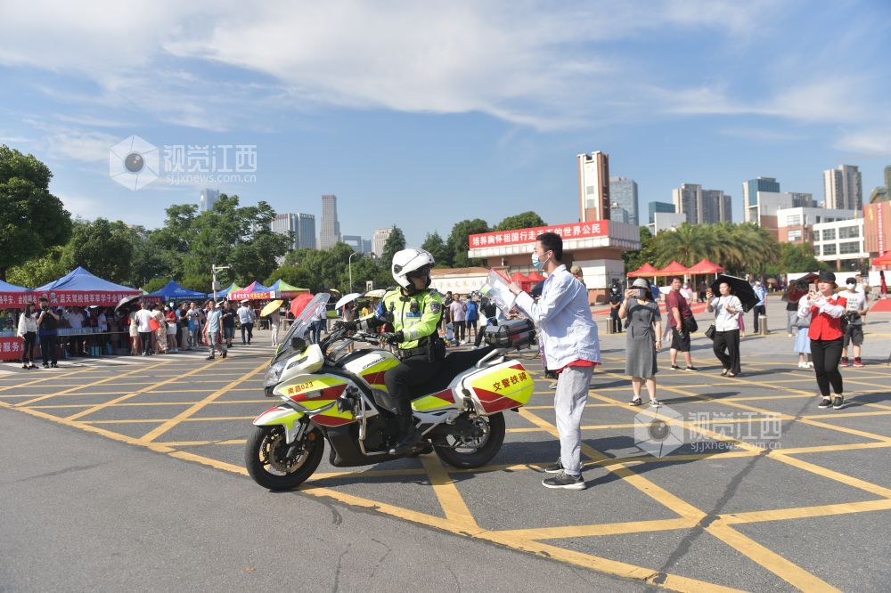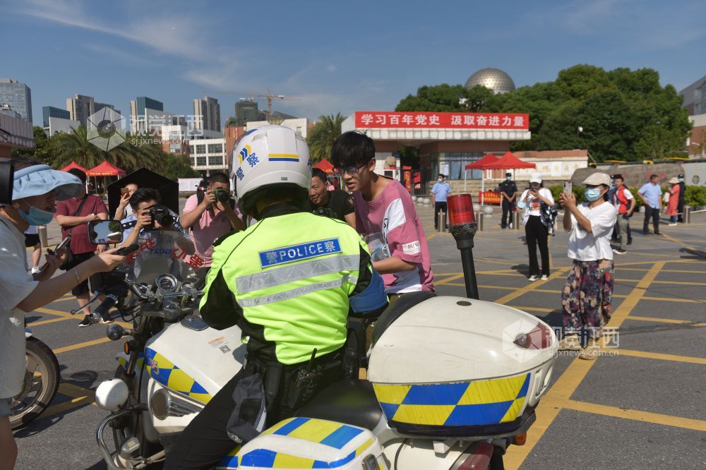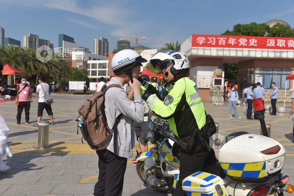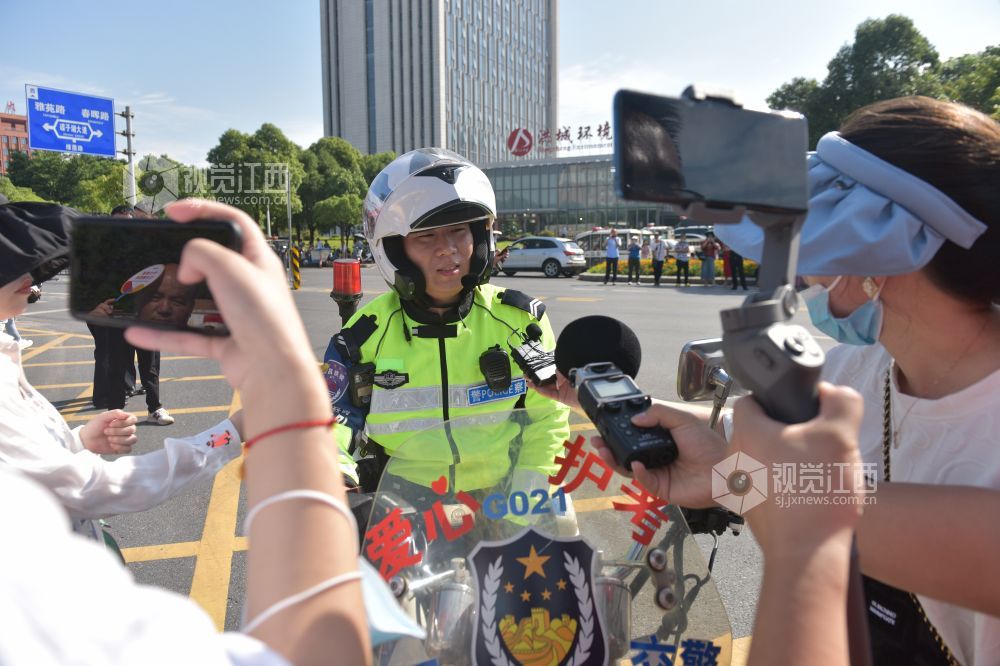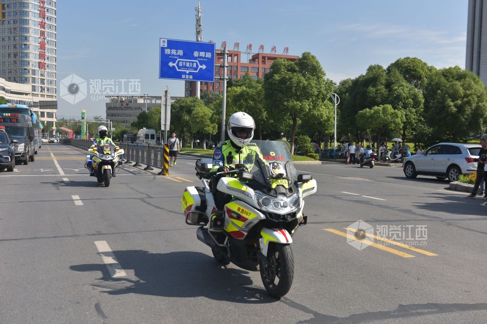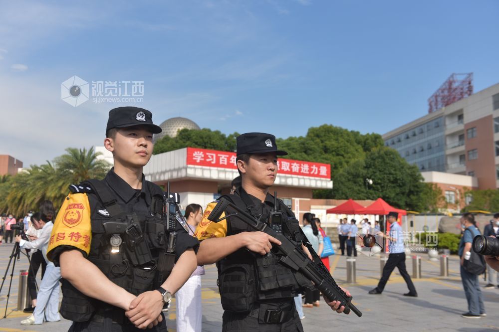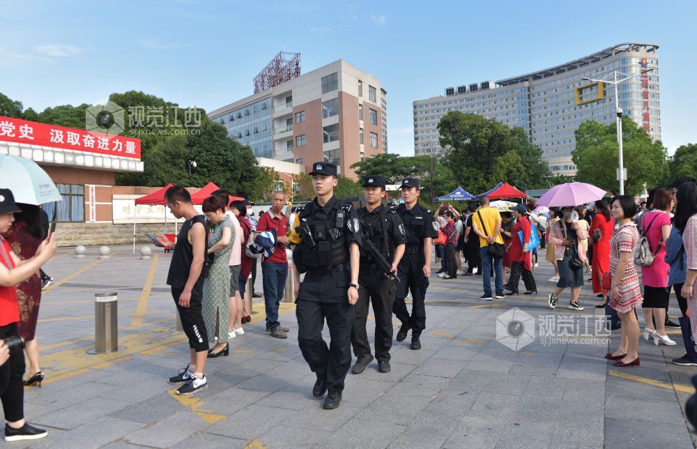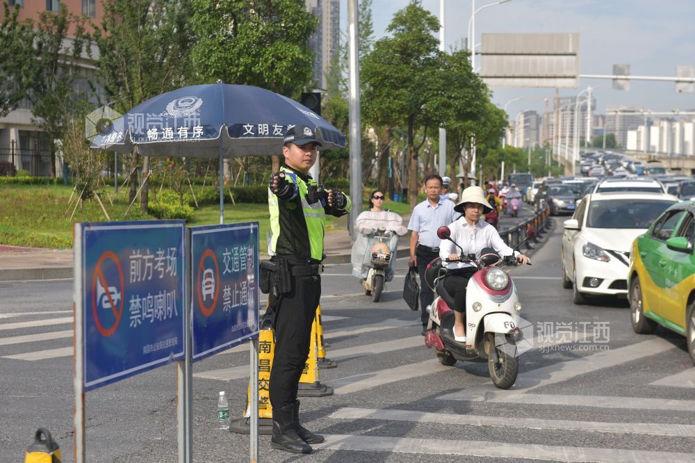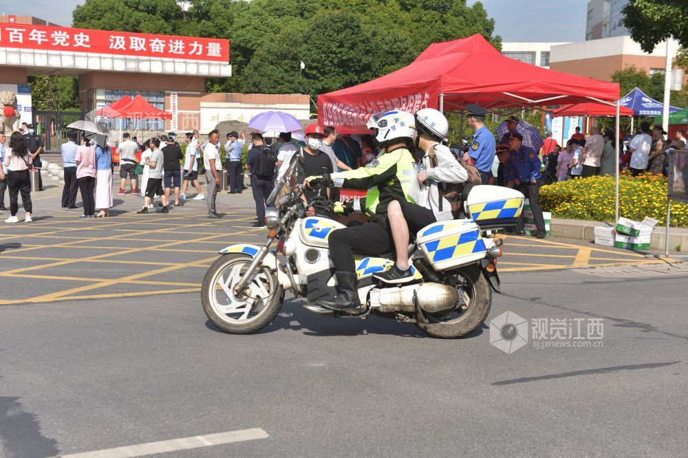 6月7日是一年一度的高考日。当日艳阳高照,在南昌二中红谷滩校区考点,交警、特警、巡警已然早早在校门口道路实施了管制,维护交通秩序。送考车辆井然有序的把一位位考生送到考点,整个秩序井然,有条不紊。
