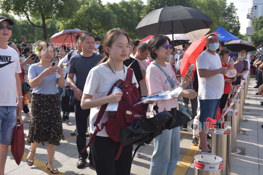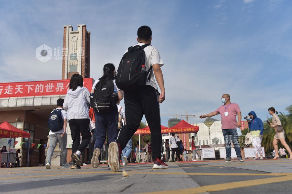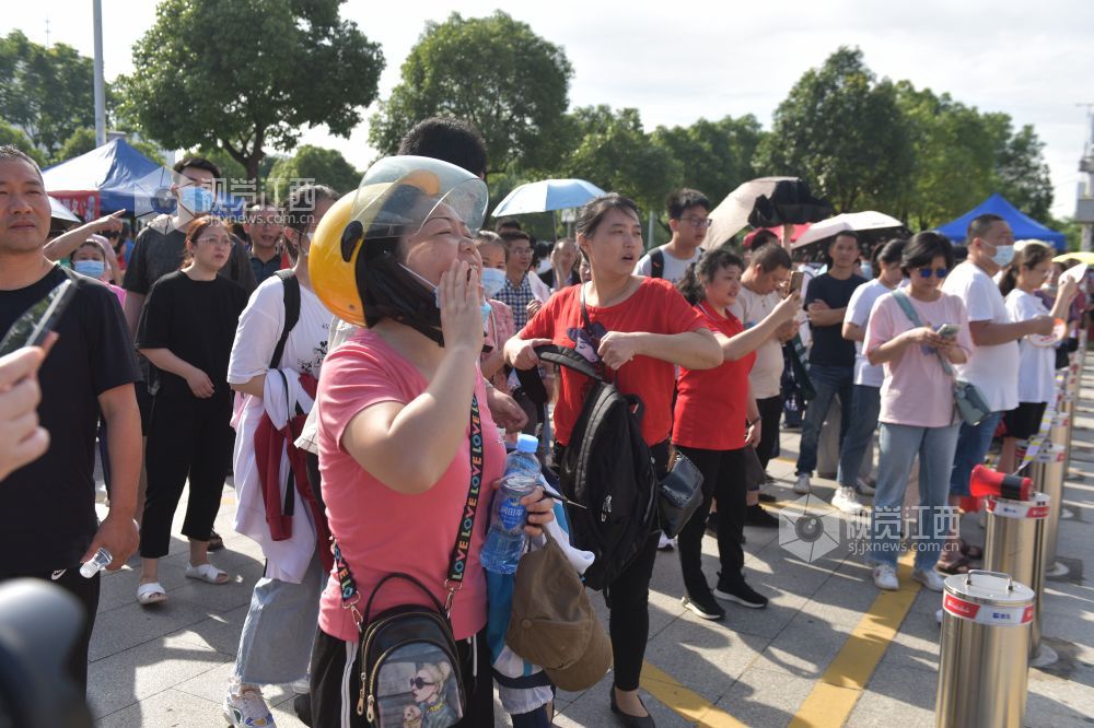 在校门口,一位位莘莘学子的家长把自己的孩子送到考点入口处,不少考生家长都穿上了色彩艳丽的旗袍,俨然成为了一场旗袍秀。