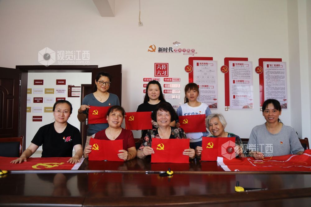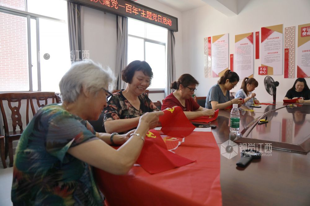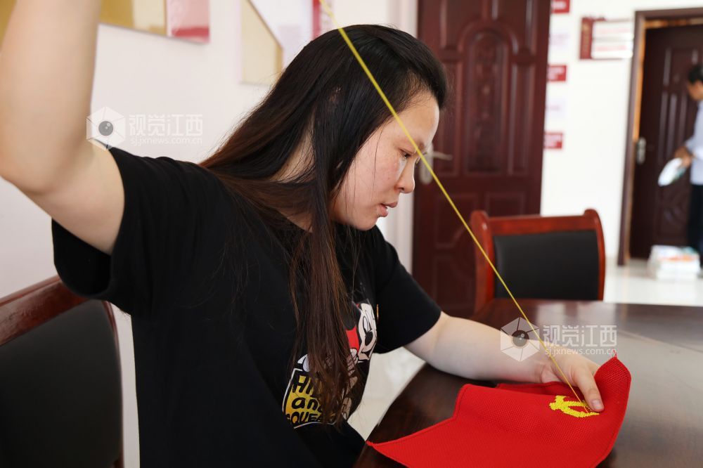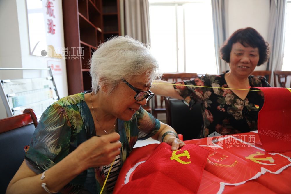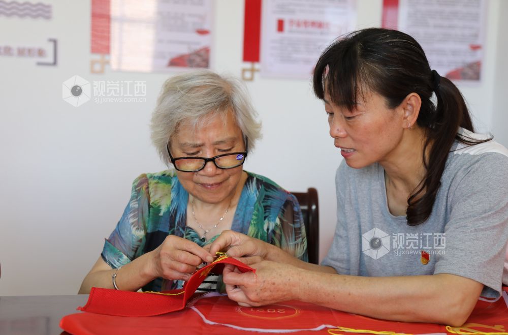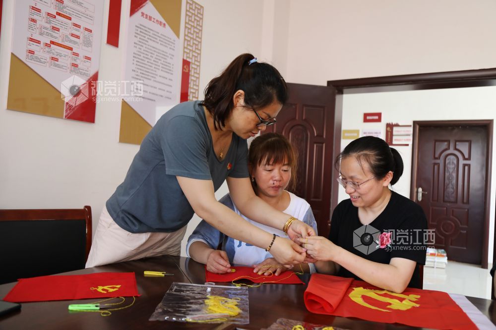6月9日,江西省莲花县琴亭镇御景湾社区开展“一针一线绣党徽,同庆建党一百年”主题党日活动,社区党员在鲜红的织布上“飞针引线”,绣出金色的党徽,把爱党、敬党、颂党之情融进亲手绣的党徽党旗中。