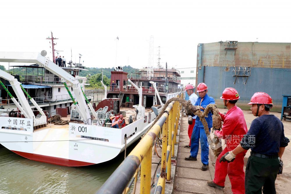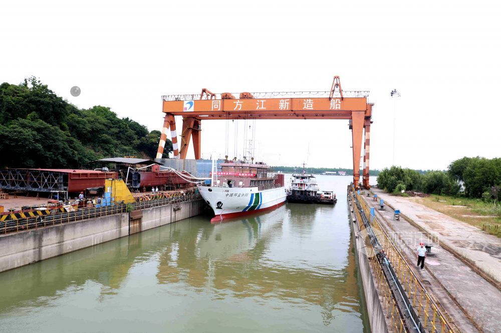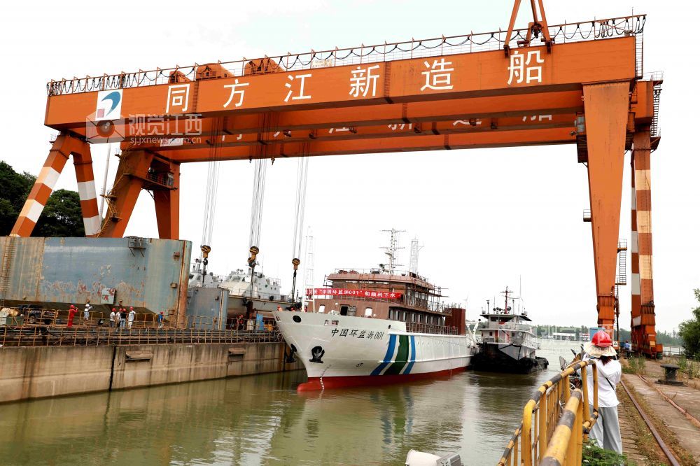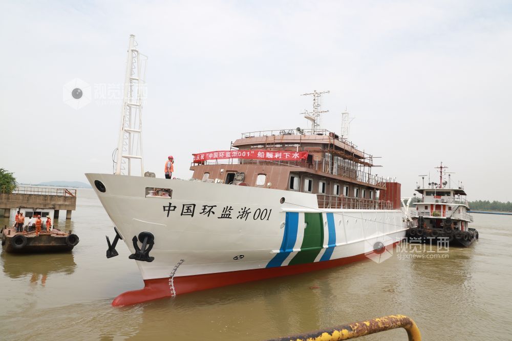 2021年6月10日上午,随着“中国环监浙001”的船体顺利起浮,我国千吨级近海生态环境监测船在江西省九江市湖口县同方江新造船有限公司万吨级船坞码头按生产建造大节点如期下水。