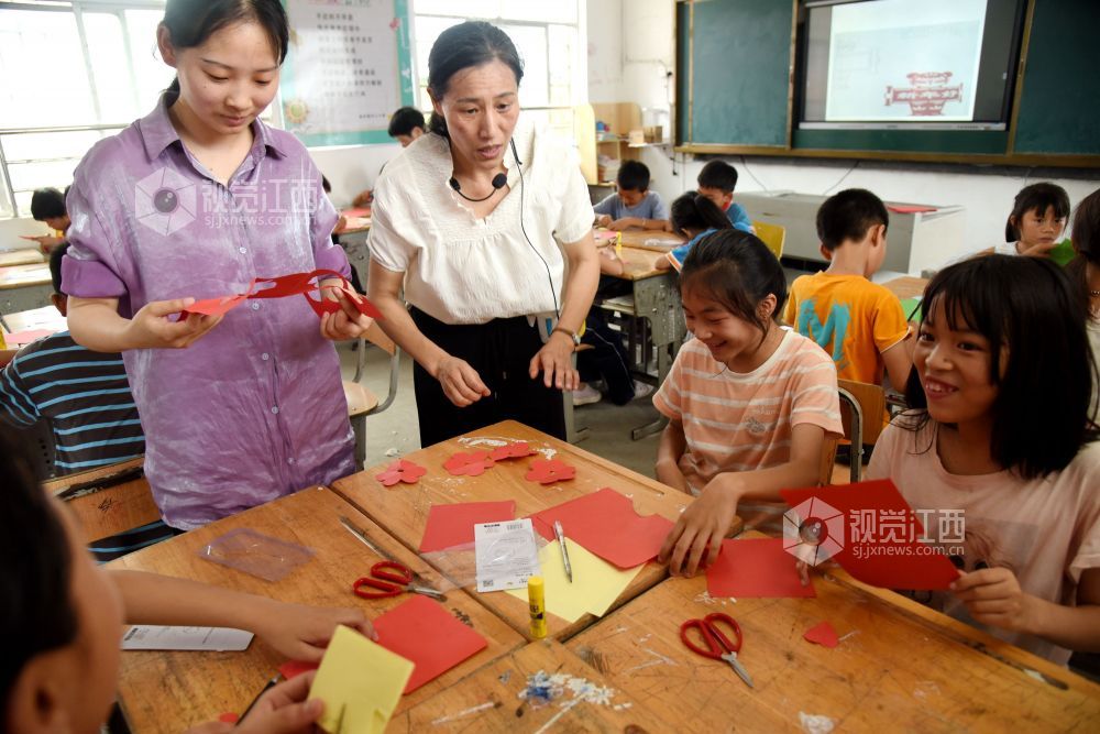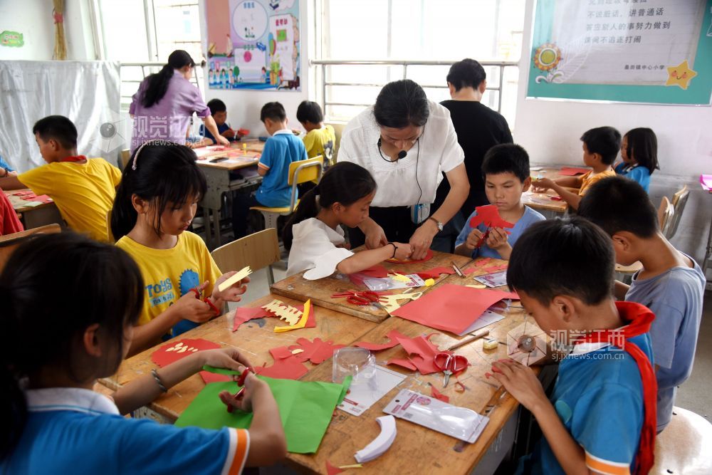 活动中,该中心科技辅导员为四年级同学辅导传统才艺——剪纸,活动以“我为党生日献礼”为主题。科技辅导员从形象设计、叠纸要点、下剪角度等方面,向孩子们详细讲解、示范剪纸的技巧。在一阵阵清脆的“咔嚓”声中,普通的红纸渐渐展露别样风采,一幅幅剪纸作品呈现于眼前,一张张开心的笑容感受到了红色记忆。