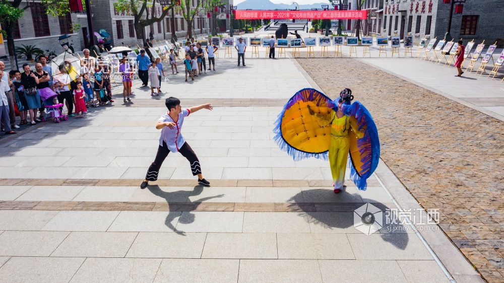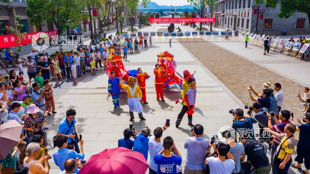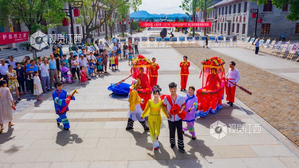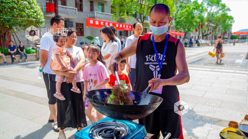 端午节期间,在江西省峡江县巴邱镇60年代记忆广场开展了以“人民的非遗 人民共享”为主题的“文化和自然遗产日”非遗展示展演活动,活动共有非遗图片展示、非遗项目展演、非遗产品烹饪大赛三个部分。极具地方特色的《峡江打蚌壳》《峡江花船》《峡江坐唱》等非遗项目,用展演及现场教学的方式传承峡江的传统文化。