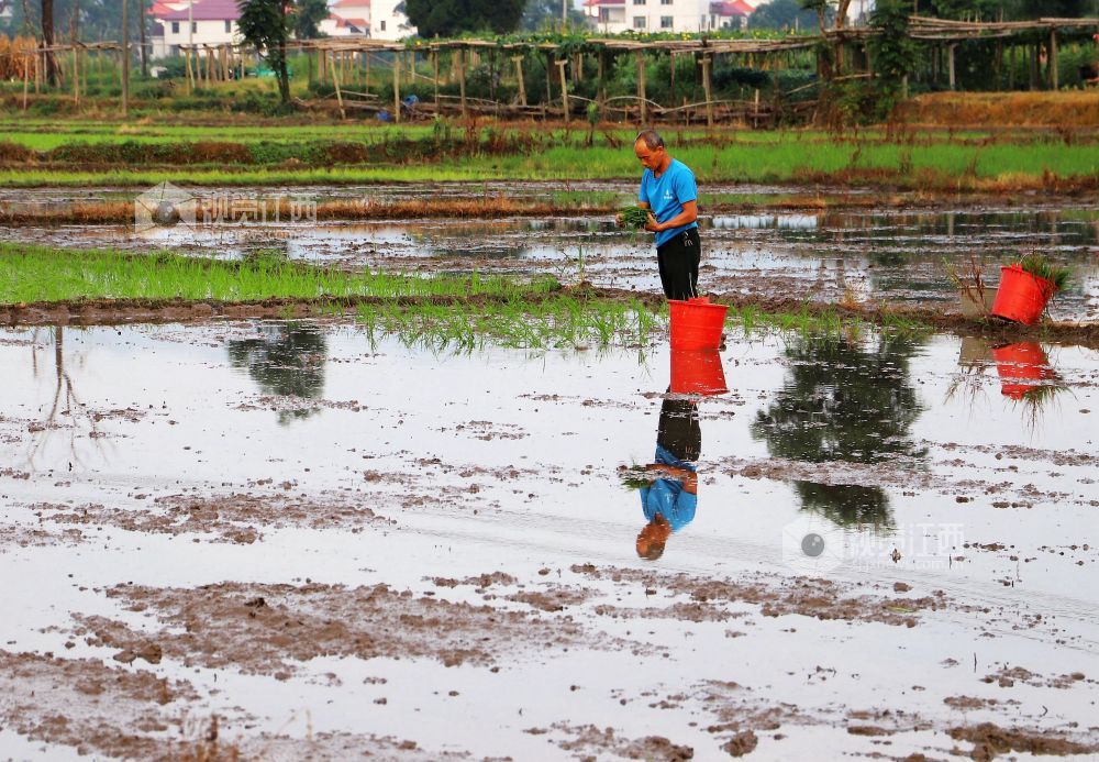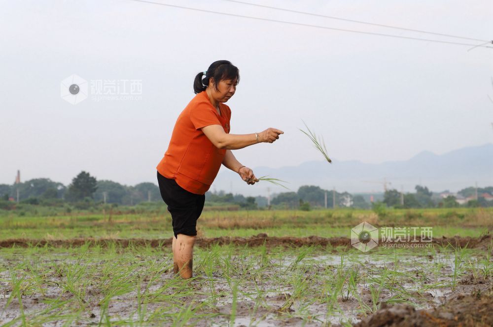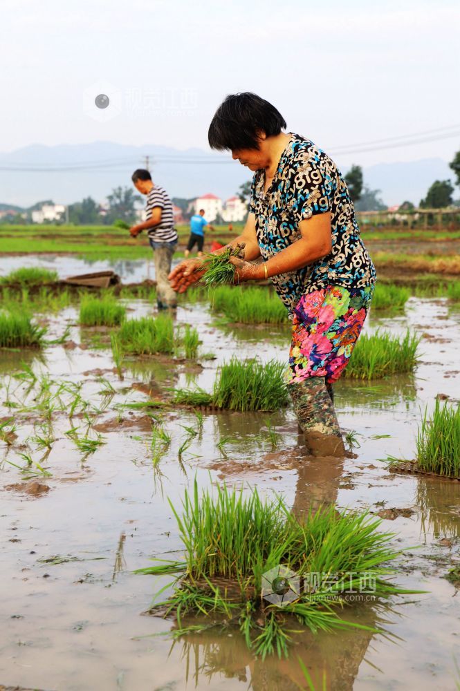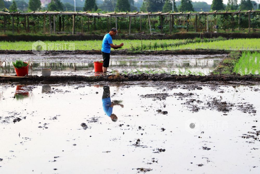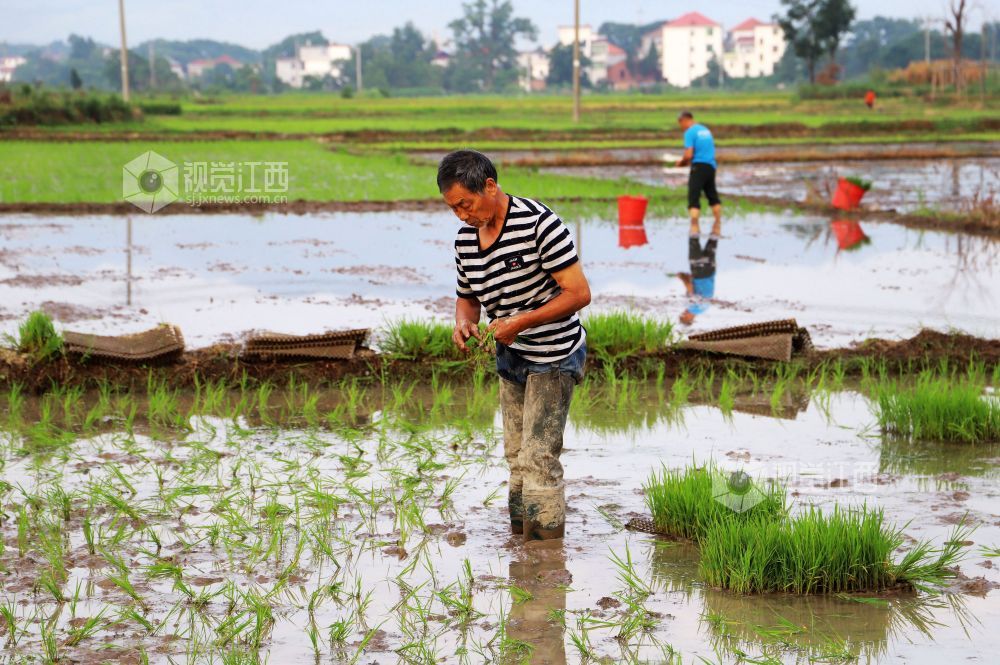 6月23日清早,江西省吉安市安福县平都镇冻背村村民在抛秧。今年,安福县继续出台奖补措施鼓励农民种粮,全县早、中稻种植面积达45万余亩。目前正值盛夏,该县农民避开高温酷暑,选择早、晚时段趁凉下地栽插中稻秧苗。