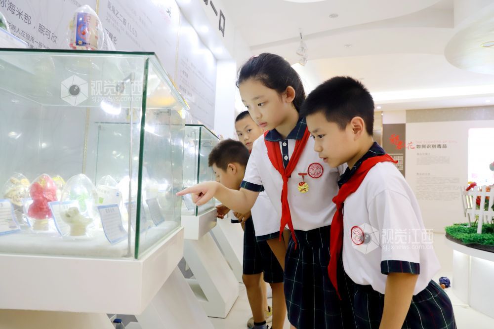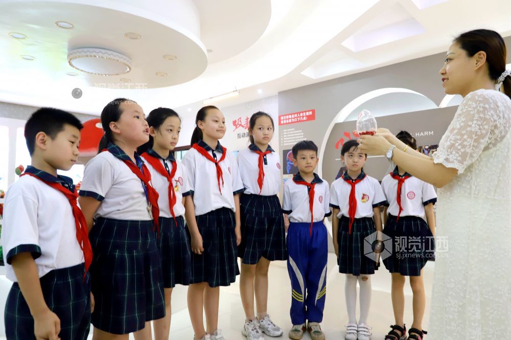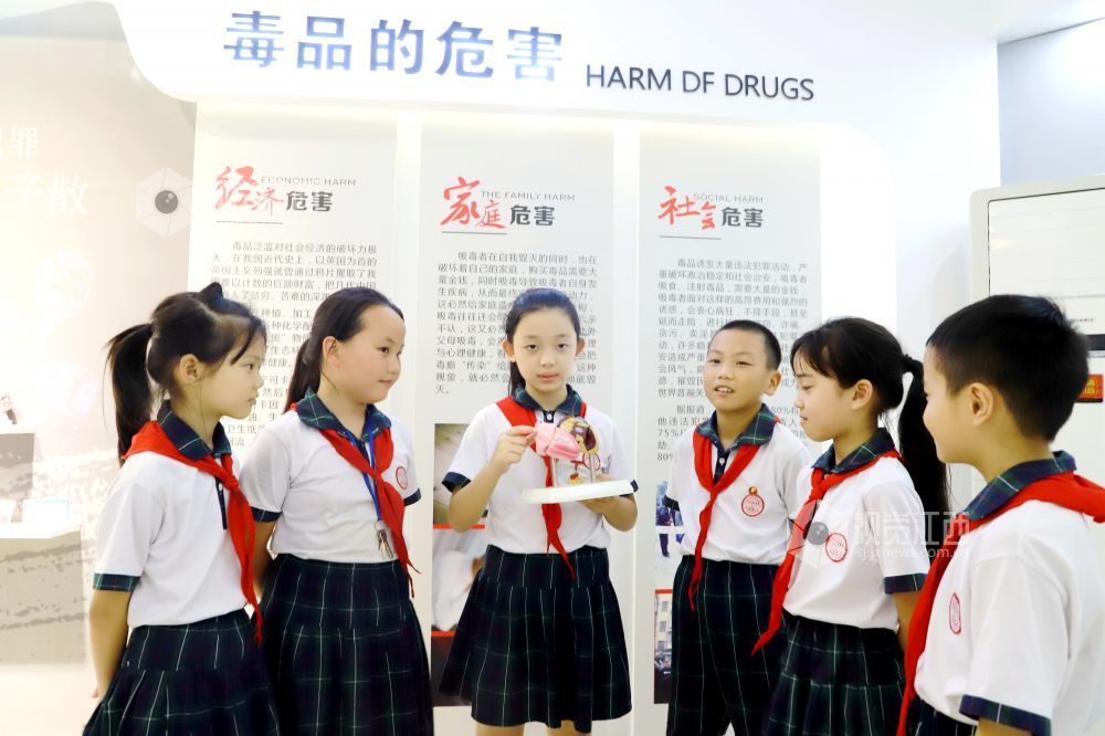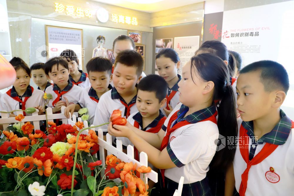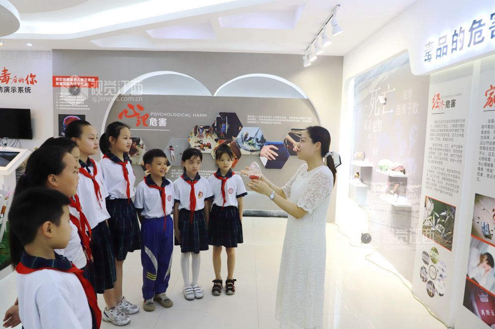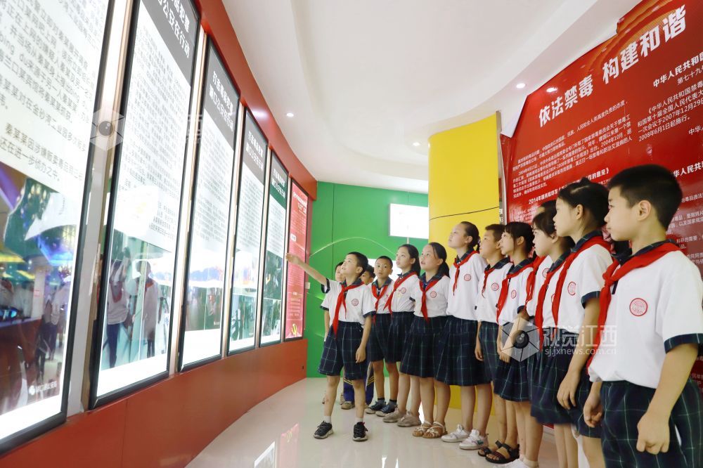 2021年6月25日,江西省九江市湖口县金砂湾学校的学生们在该县禁毒教育基地,通过观看毒品样本、聆听讲解、互助交流等方式,了解毒品的品种以及对个人、家庭和社会的危害,提高学生识毒、防毒、拒毒和禁毒意识和能力,迎接“6.26国际禁毒日”的到来。