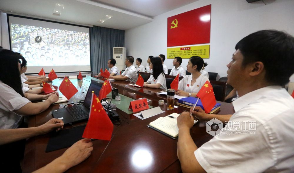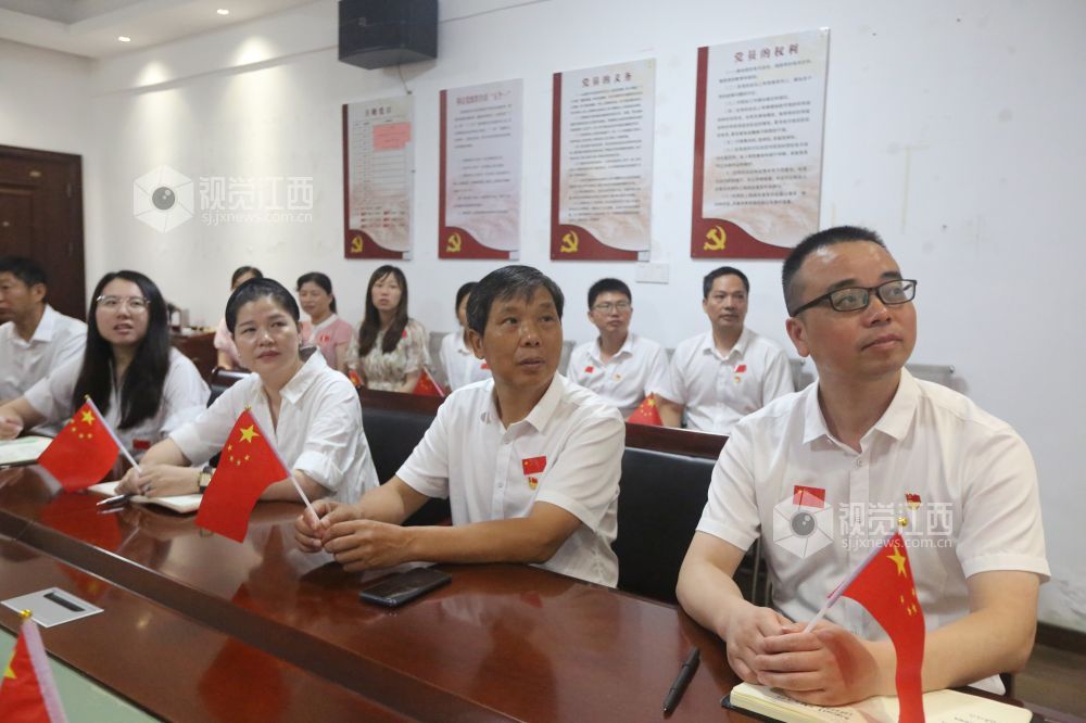 2021年7月1日,江西省吉安市峡江县各单位各部门党员群众收听收看庆祝中国共产党成立100周年大会实况。
