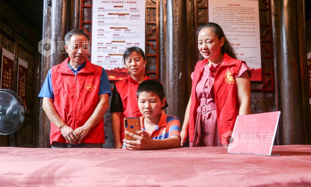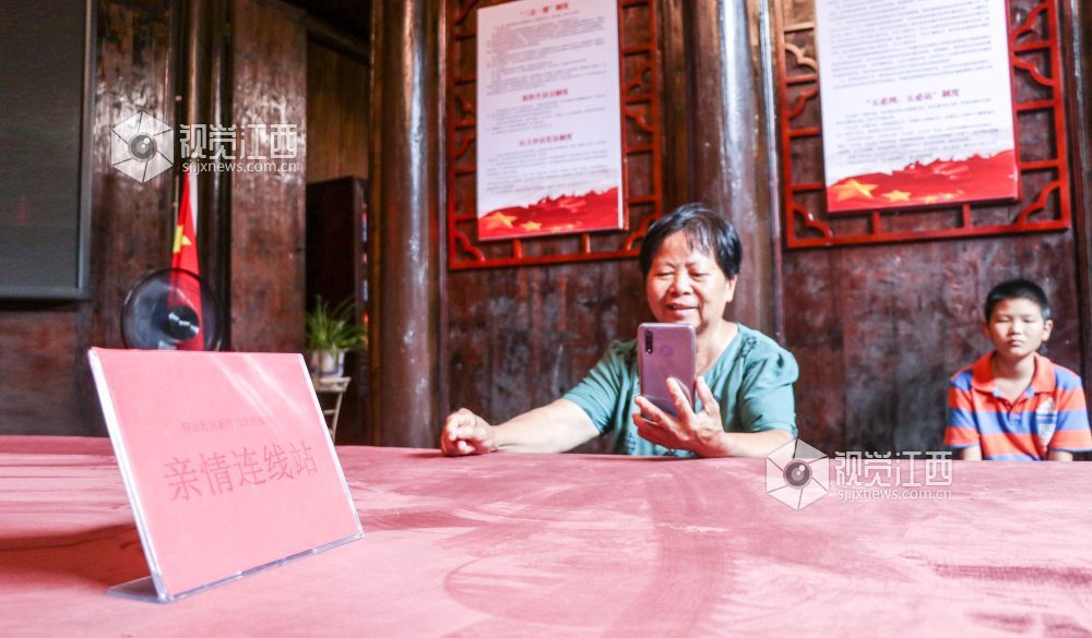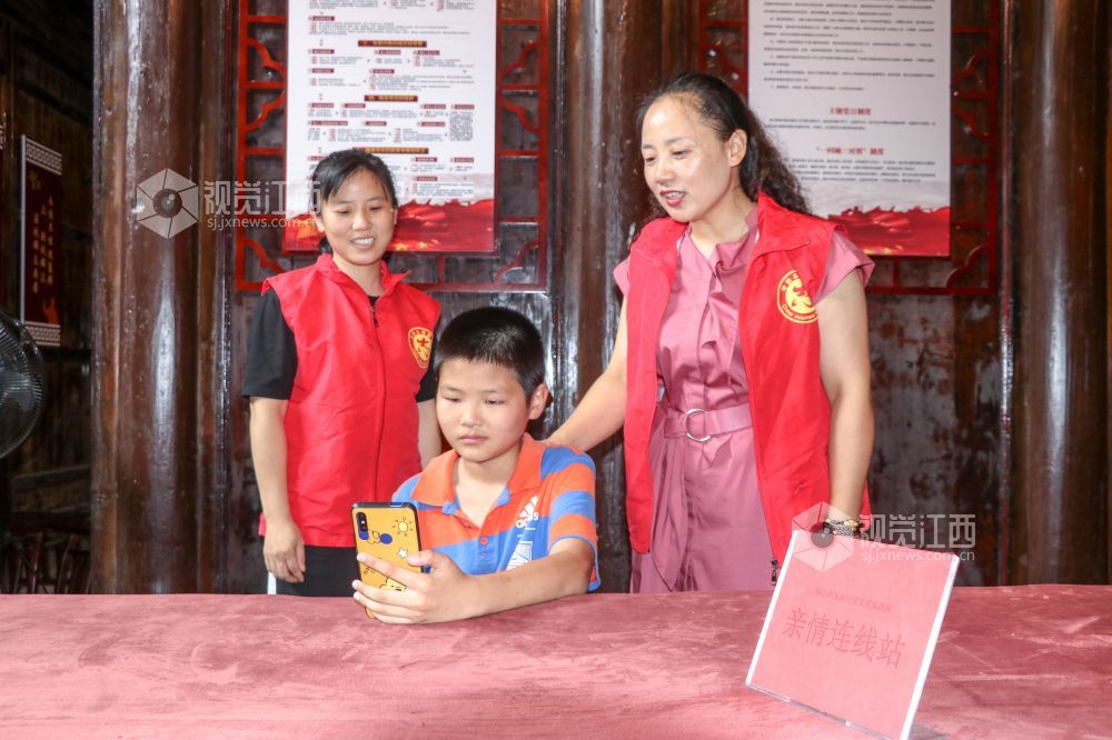 2021年7月2日,江西省抚州市金溪县仰山社区新时代文明实践站,居民与亲人千里连线,一家“团聚”。