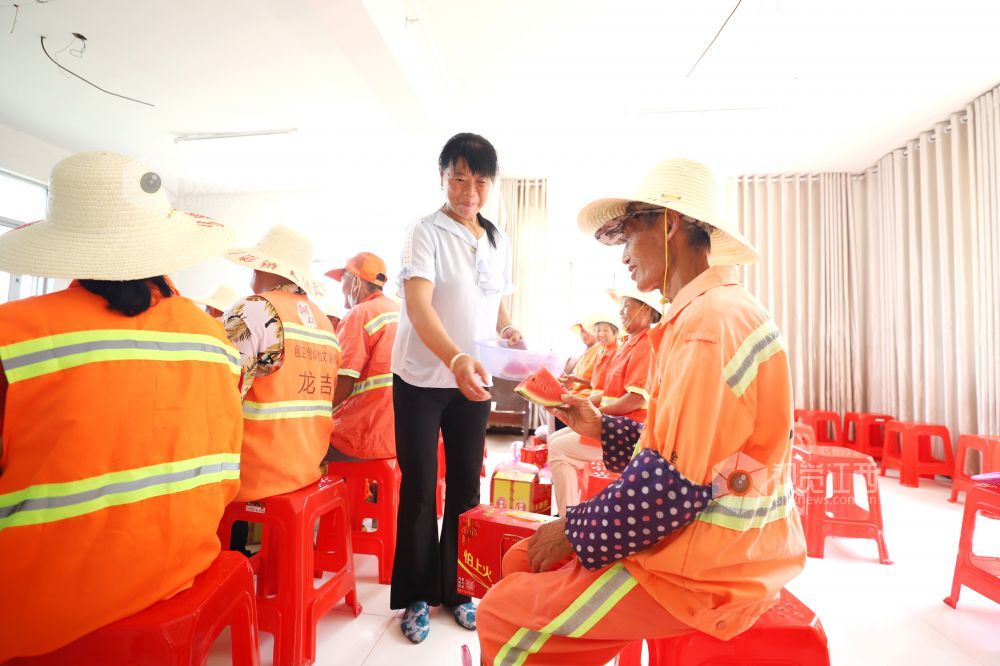 2021年7月12日,江西省九江市湖口县马影镇为全镇70多名环卫工作者送去绿豆、冰糖、凉茶等防暑降温慰问品,以表达对坚守在一线的辛勤“乡村美容师”们最真挚的关怀。