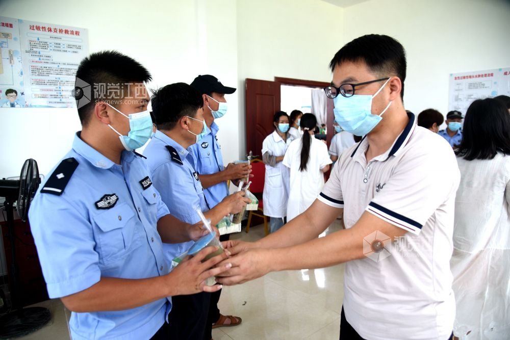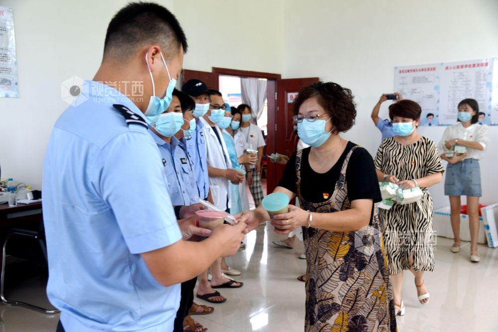 2021年7月13日下午3时,江西省抚州市南丰县开展“疫苗接种工作忙 炎炎夏日送清凉”活动,为县城3个疫苗接种点工作人员送去绿豆汤和暑药。