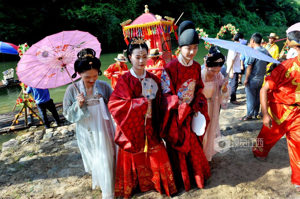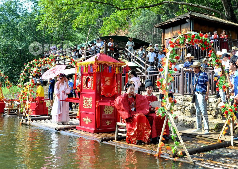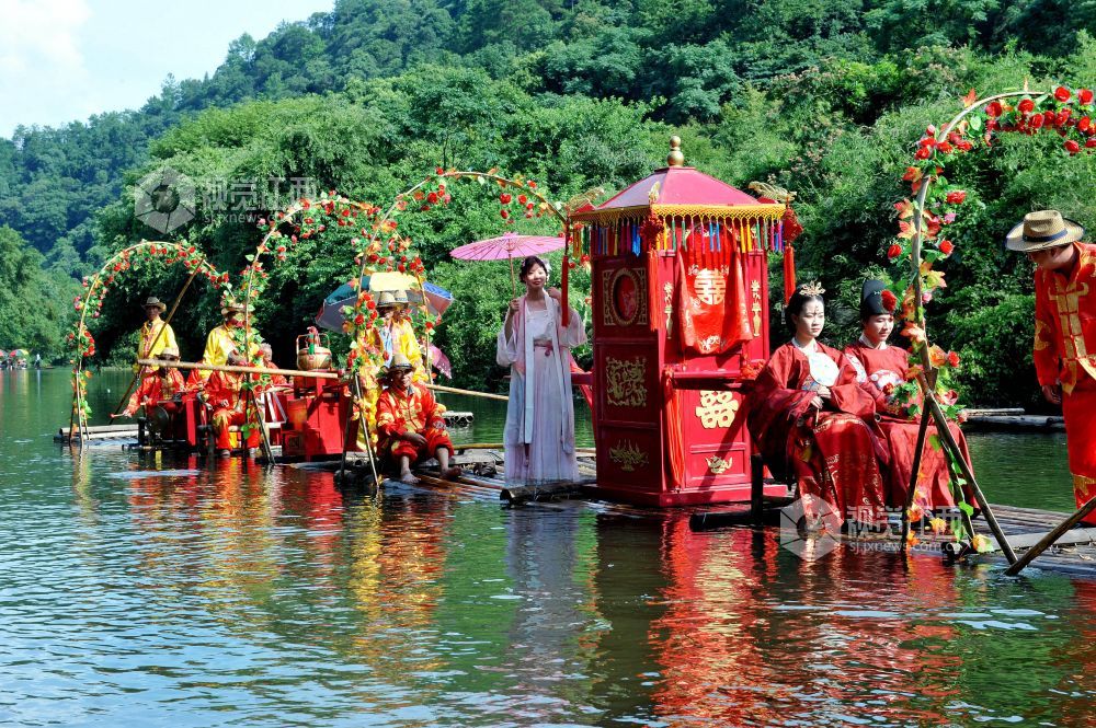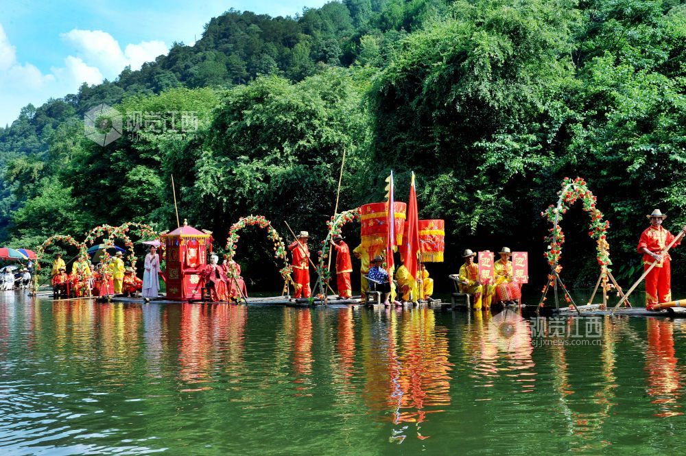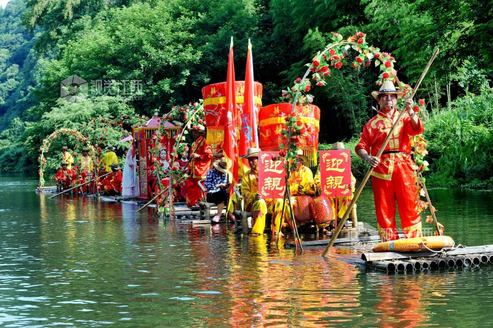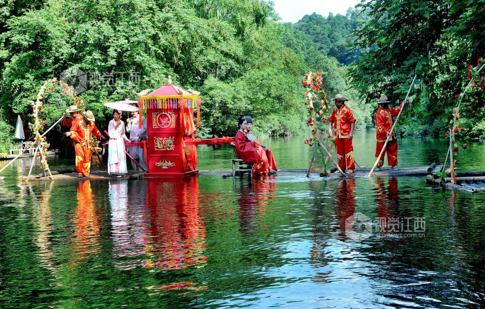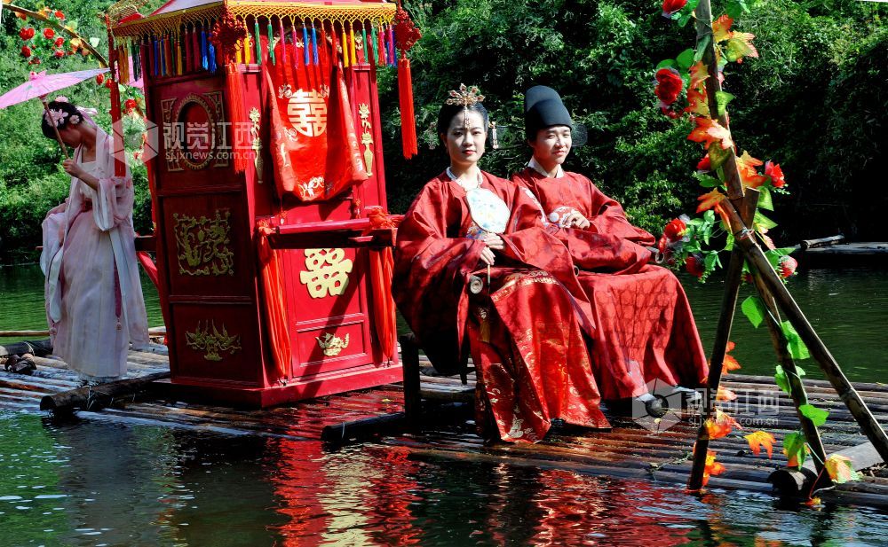 据了解,水上花轿迎亲是古代水上交通不便时留下的一种传统迎亲方式。江西省抚州市广昌县杨溪乡为传承我国古代民间婚俗文化,在抚河源头竹筏漂流景区举办水上花轿迎亲表演活动,村民们身着传统服饰,吹着唢呐、抬着花轿,组成了一支水上花轿迎亲队伍,由专人负责水上安全,现场为前来休闲观光的游客演示传统农家“接亲”婚俗活动,既丰富了景区的旅游文化内涵,又提升了景区旅游人气,助力乡村振兴。