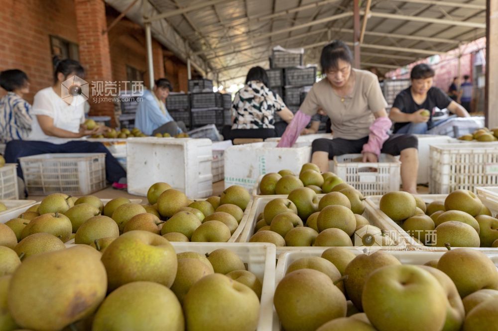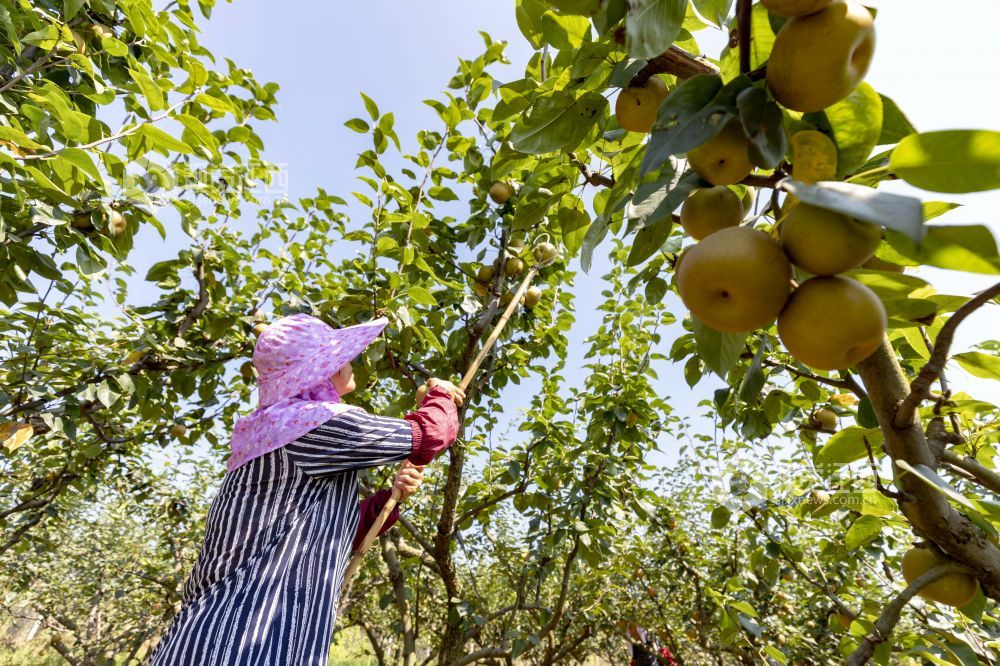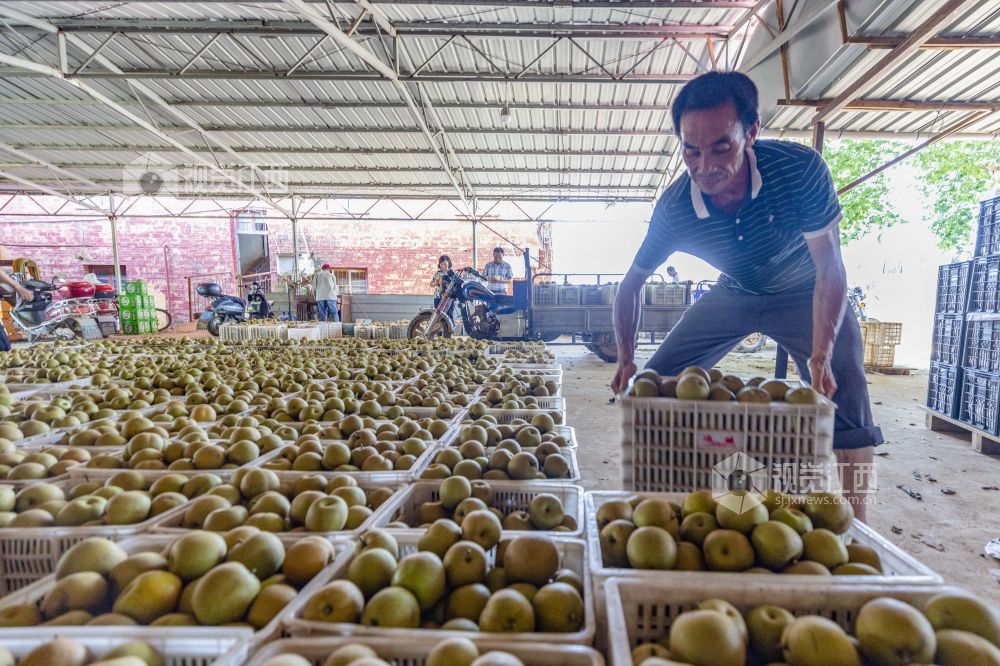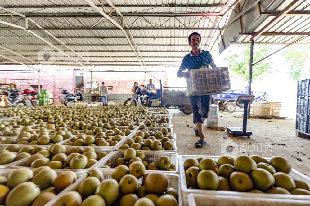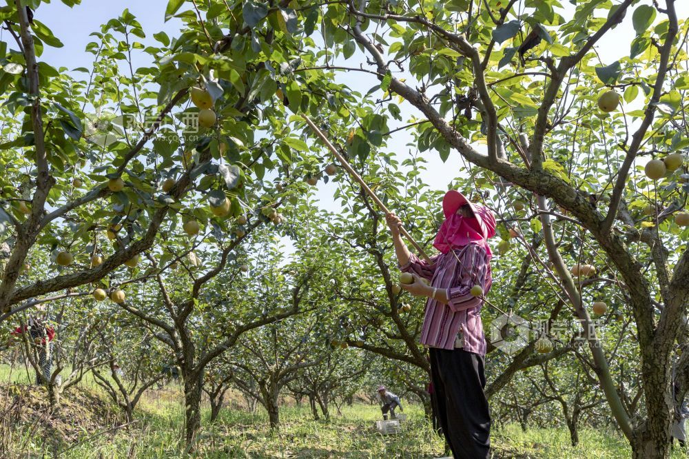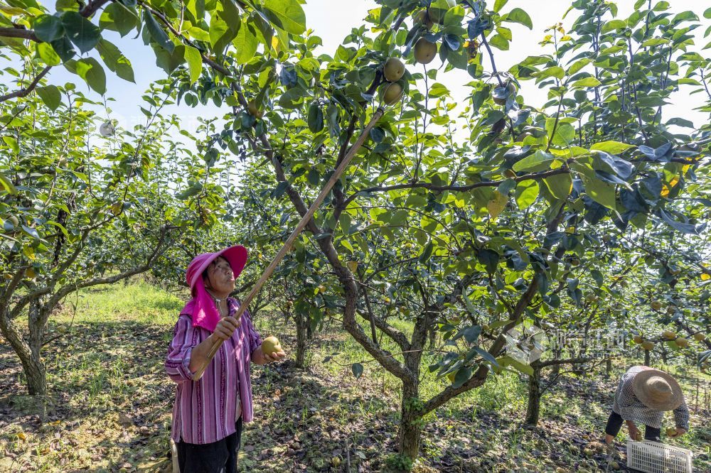 7月14日,江西省庐山市星子镇早熟梨基地,农民正在采摘鲜果。